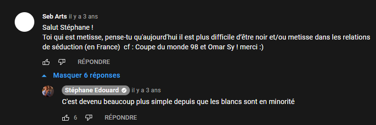 Donc arrêtez d'être racistes (coucou Léo) quand on vous dit que l'on culbute vos soeurs, même SE le dit