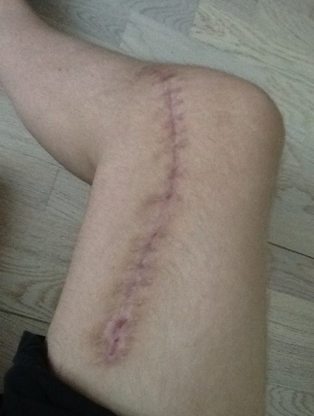 Une au niveau de l’aine suite à une opération (environ 15cm de base mais maintenant plus que 10cm)