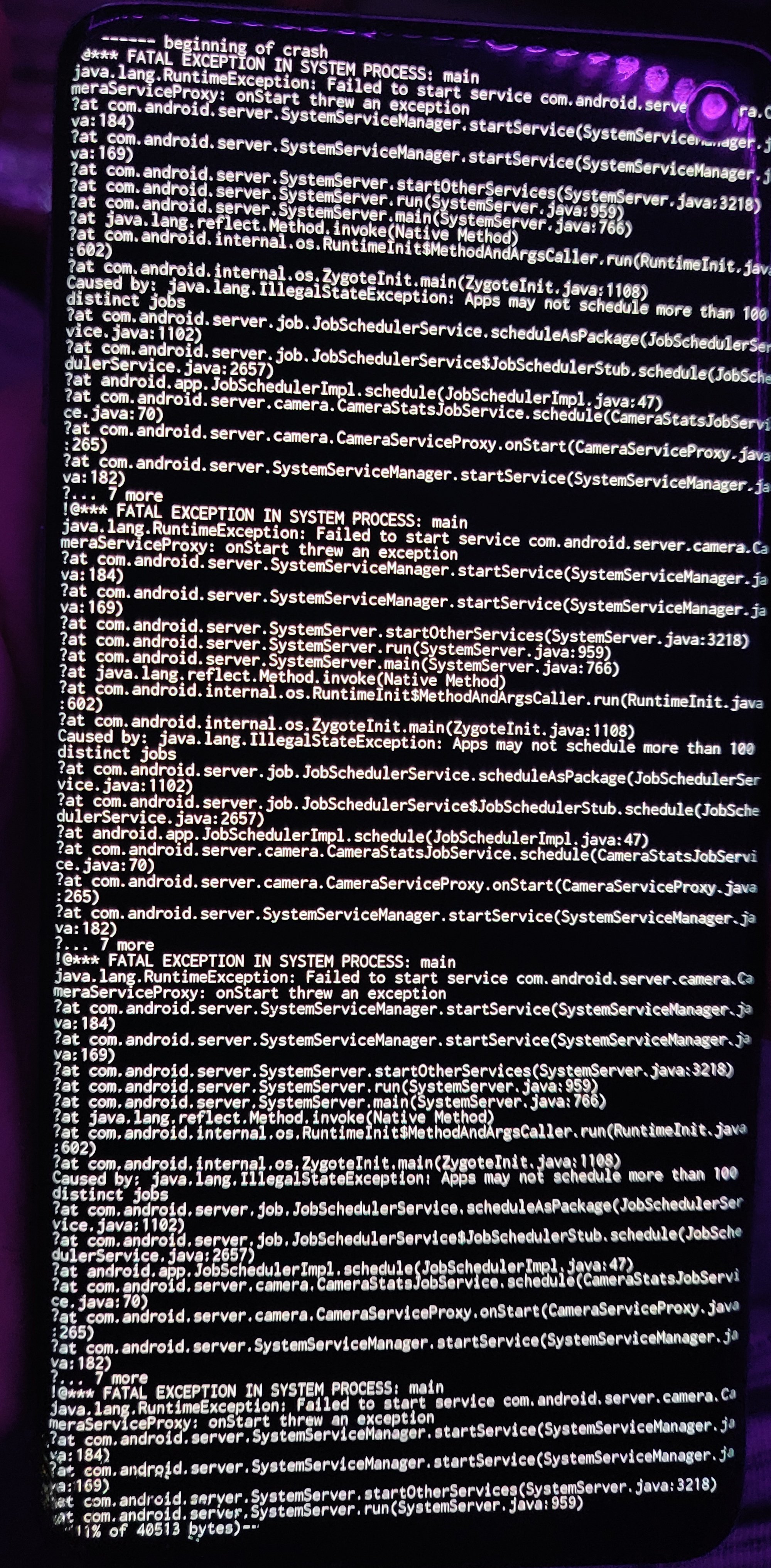 Mon téléphone ne démarre plus, il reste bloqué sur le logo Samsung (c'est un S10), les logs affichent ça :