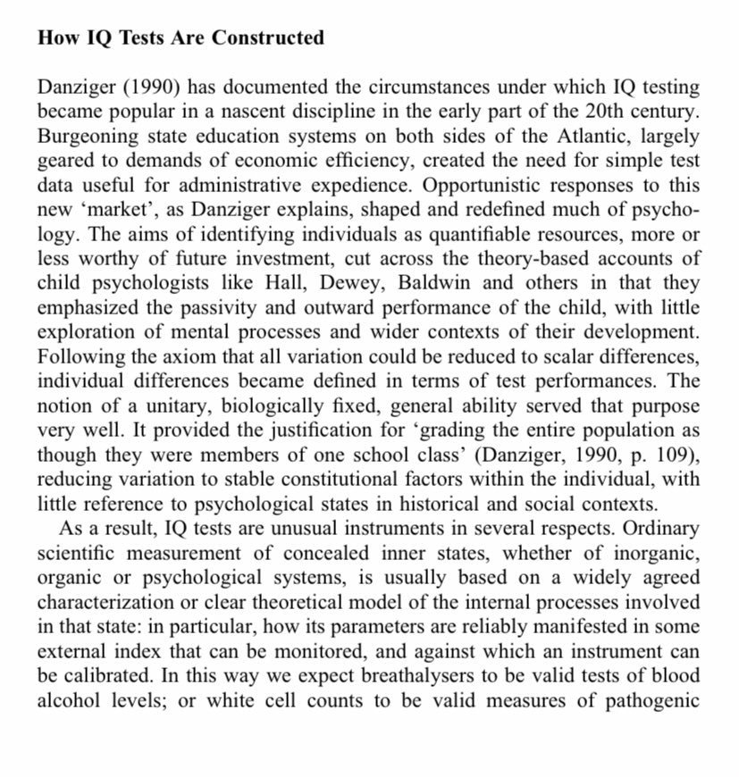 La psychologie n’est pas une science, c’est tout juste un champ d’études qui vise à réifier les populations en leur attribuant des catégories. Le QI, par exemple, n’est qu’une construction qui ne reflète aucune réalité concrète et qui a été pensée pour être calquée sur les capacités scolaires :
