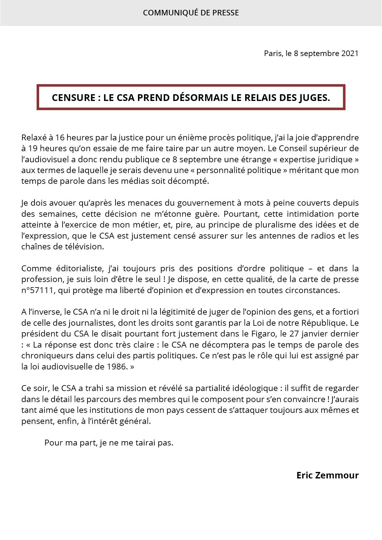 La fameuse censure Zemmour alors qu'on l'entend tout les jours depuis des années