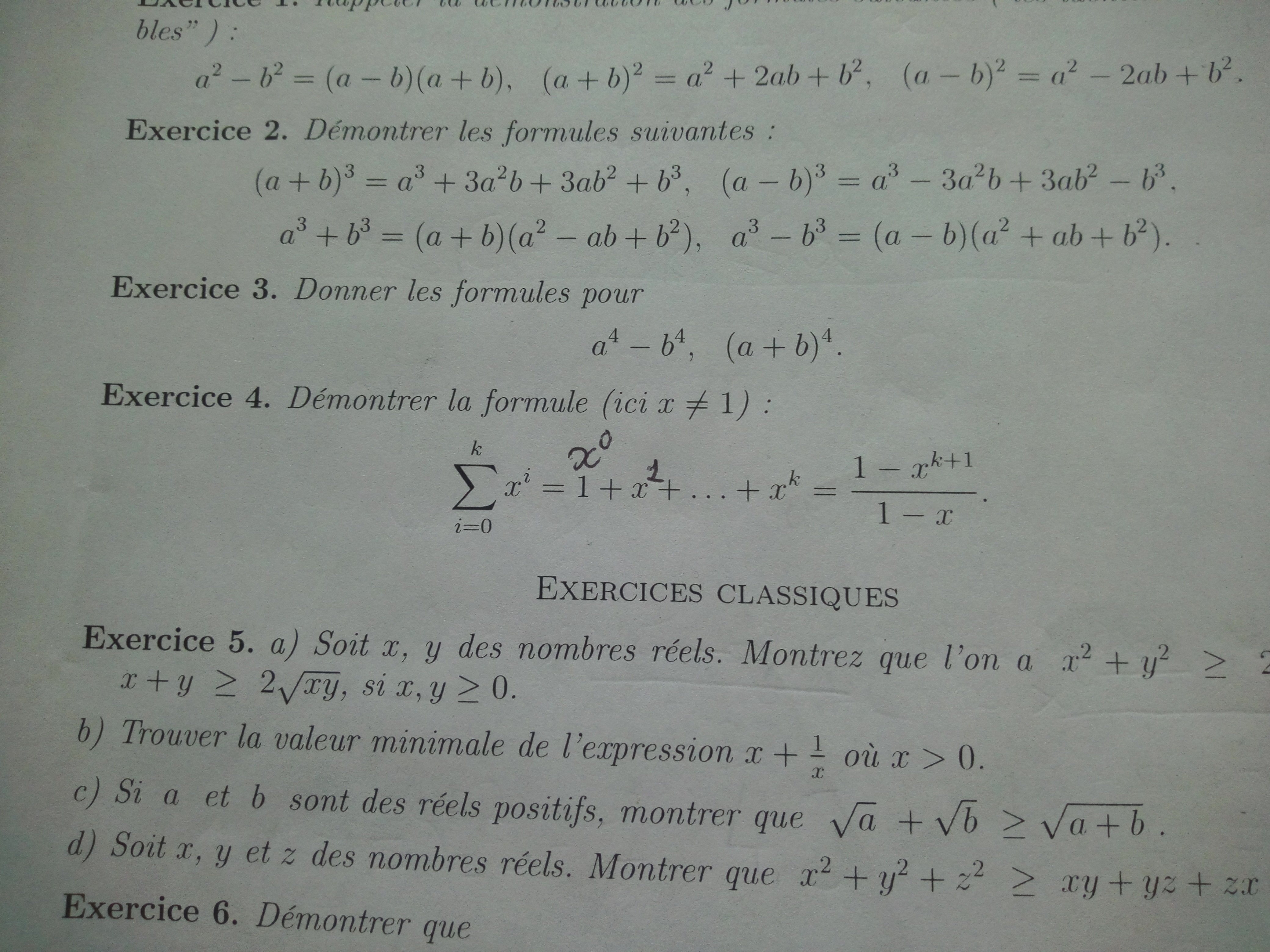 ça sent le début de prépa tout çaBordel ça rigole plus, ça faisait longtemps que j'avais pas été en cours, le choc est brutal, là du coup j'ai nommé ça comme une suite, avec Sk+1 = Sk + x^k+1 et S0 = 1, mais je vois pas quoi faire après
