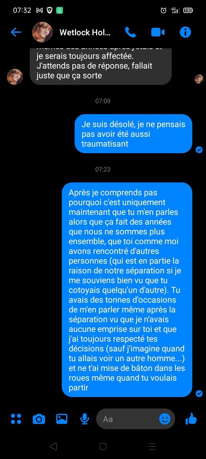 Non, c'est elle qui me trompait, moi je l'aimais beaucoup, mais j'ai pas essayé de la retenir dès que j'ai appris la supercherie
