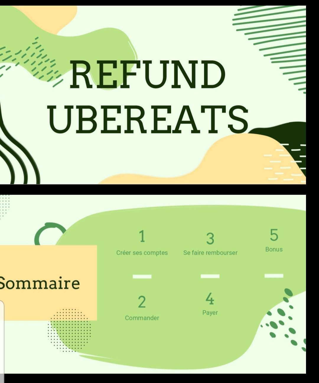 Je vous propose ici un e-book qui explique comment obtenir à coup sur un remboursement sur Uber eats, pour votre plaisir personnel ou pour lancer un business (même s'il ne s'agit pas de la technique la plus optimisée pour un business B4U).