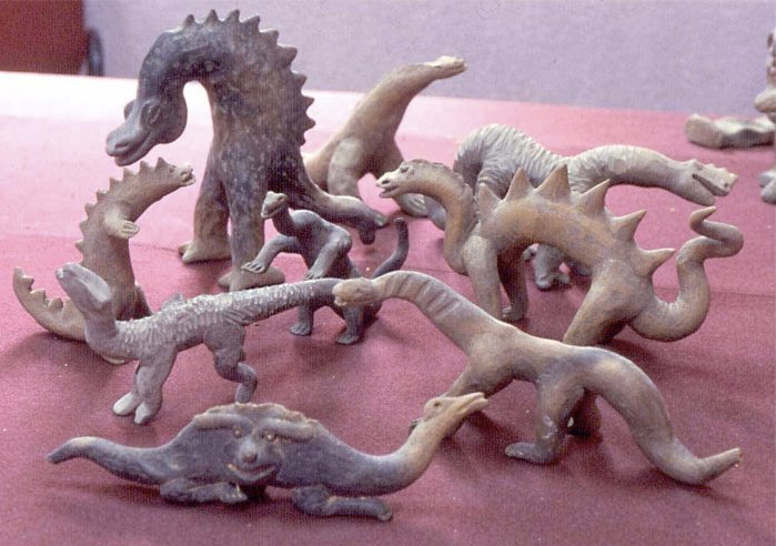 L'une des principales raisons du rejet de cette découverte tient aux représentations de ces figurines. Elles représentent entre autre, des dinosaures, des animaux inconnus, des reptiles, certains aux traits aviaires ; certaines semblent indiquer une forme de domestication de petits reptiles et de petits dinosaures, des grands singes, d'autres montrent clairement des actes zoophiles avec des reptiles, enfin, beaucoup représentent des divinités inconnues, la vie courante et ses objets usuels (pipes, instruments de musique, etc.)...