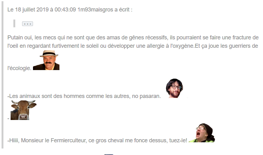 Vous avez tous 2 de QI, si t'as déjà vu ne serait-ce qu'un post twitter d'Usul, t'as toujours un chauffe-eau en dessous pour dire "le physique de ses idées", bah là c'est pareil, Usul connaît super bien les gimmicks d'extrême-droite sur Internet, il a juste jamais basculé dedans parce qu'il a une sensibilité profonde de gauche, avec tout ce que ça implique