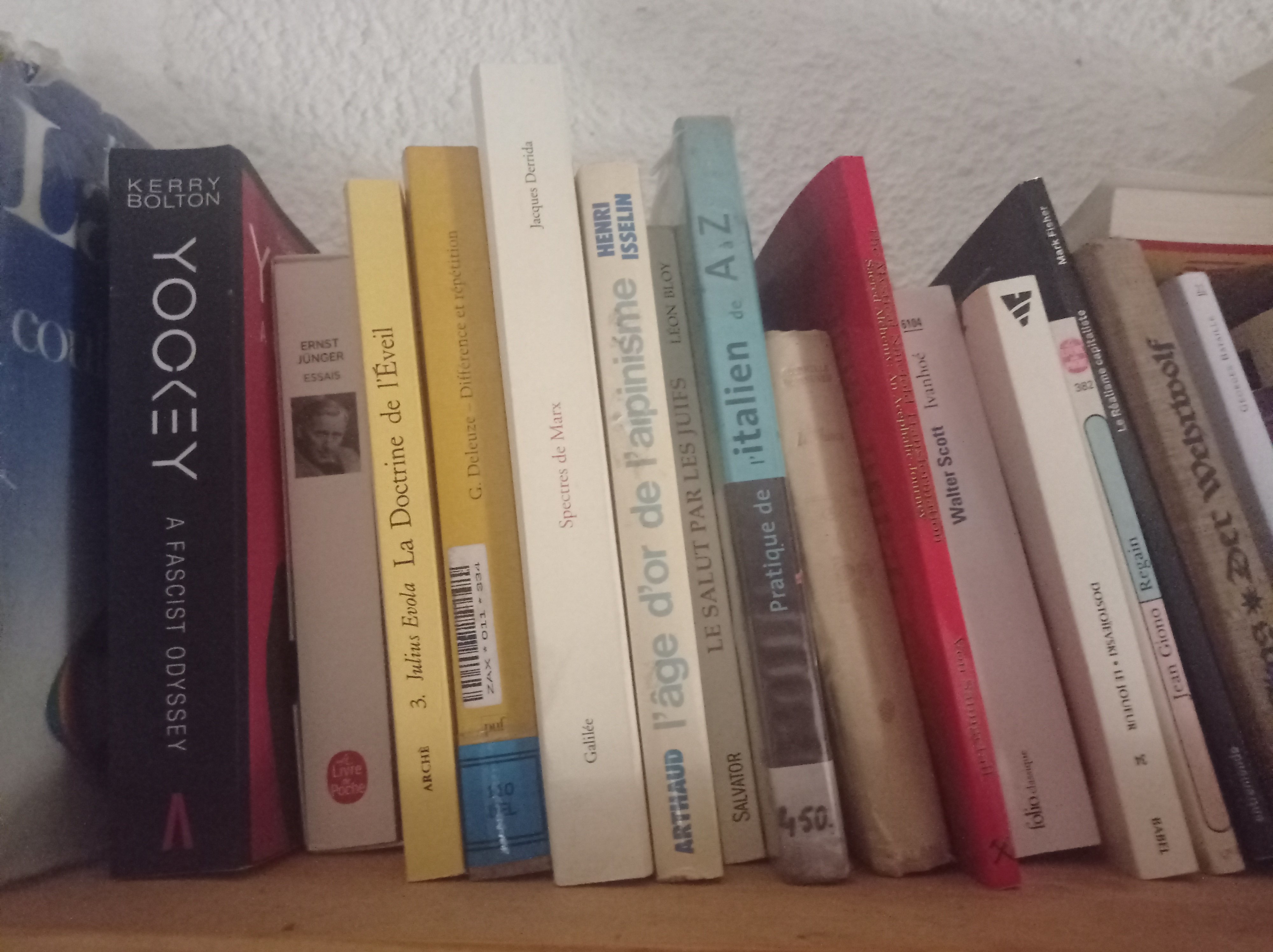J'ai beaucoup de Deleuze, Derrida, Lyotard, Foucault, Evola, Spengler, Nietzsche et de Littérature gothique mais restée chez mes parents