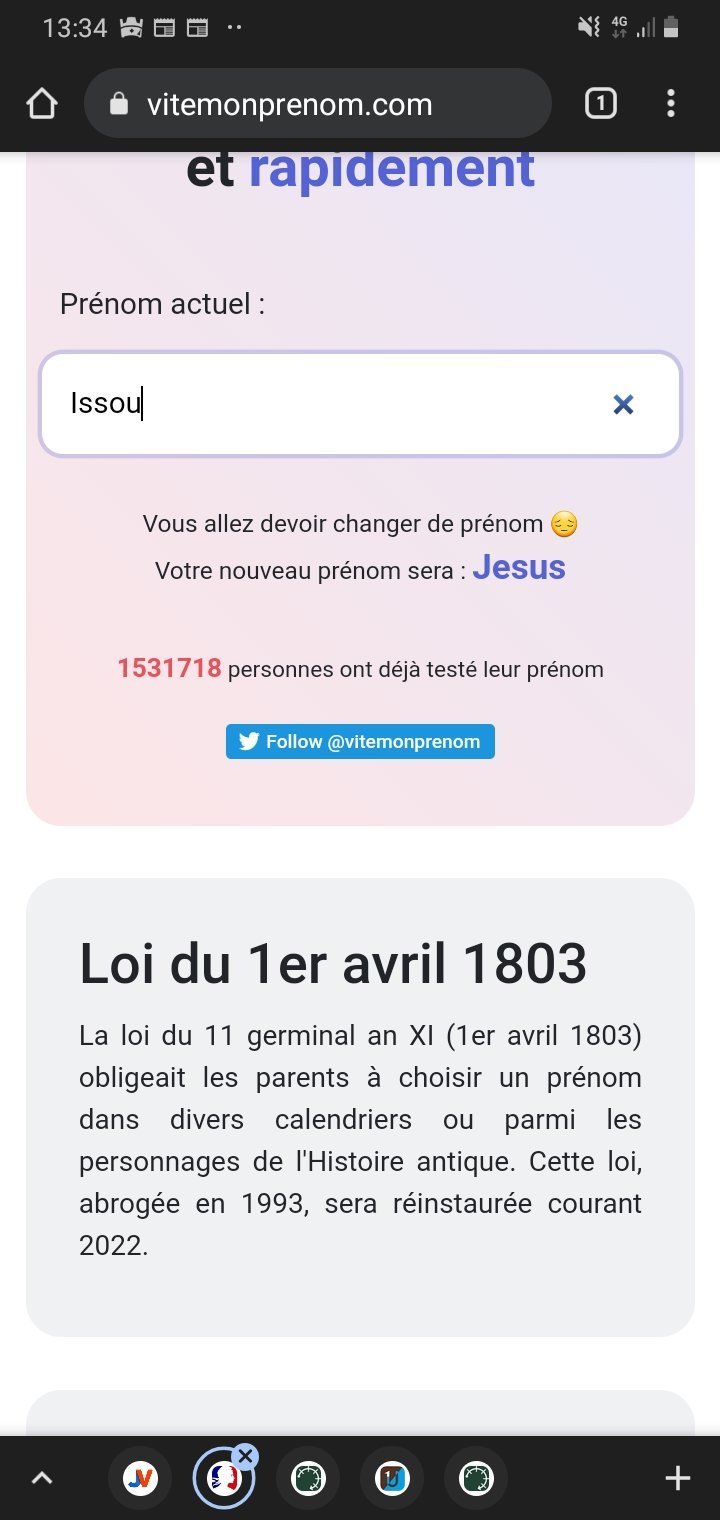 Le 16 septembre 2021 à 13:34:07 :J'ai un prénom de DZ mais j'ai donné un prénom bien français à mon fils jsuis un vrai collabeur comme dirait soral