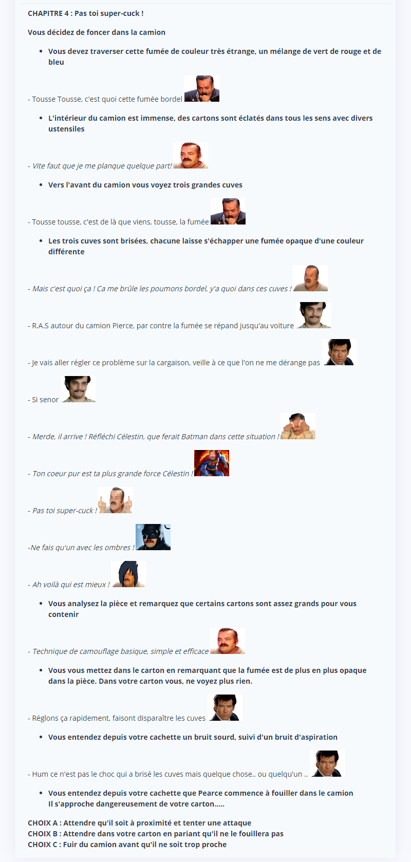 - Celestin, je ne pense pas que tu sois en position de faire le malin