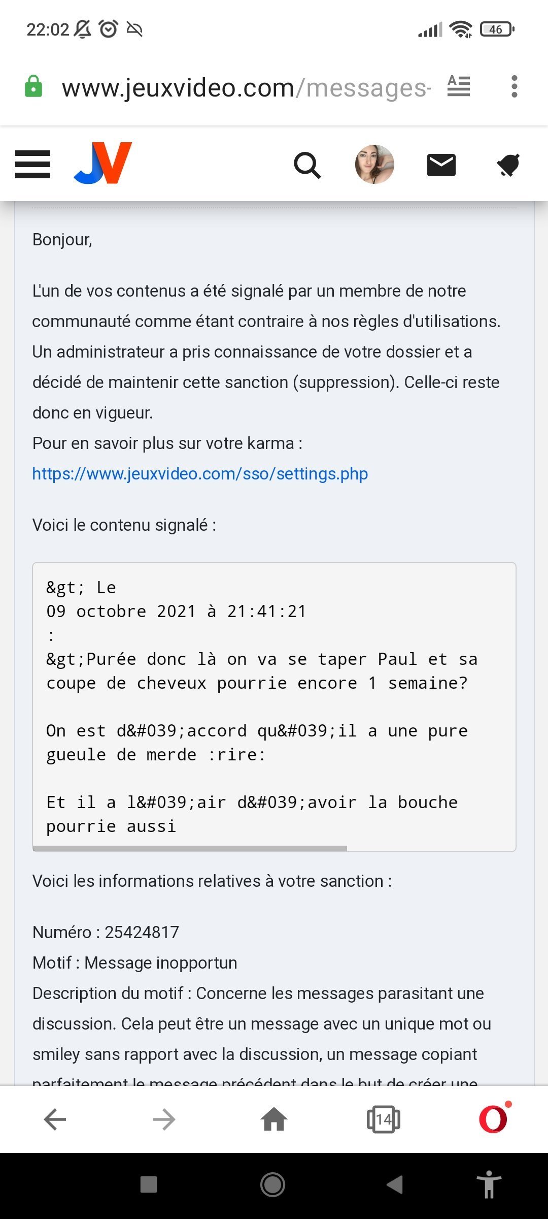 Par contre les mecs qui me ddb sur mon propre topic: en fait c'est moi qui ait créé le topic. Donc si vous me ddb encore une seule fois je supprime le topic en 2 secondes.Visiblement pour certains je n'ai même pas le droit de commenter l'émission sur mon propre topic.
