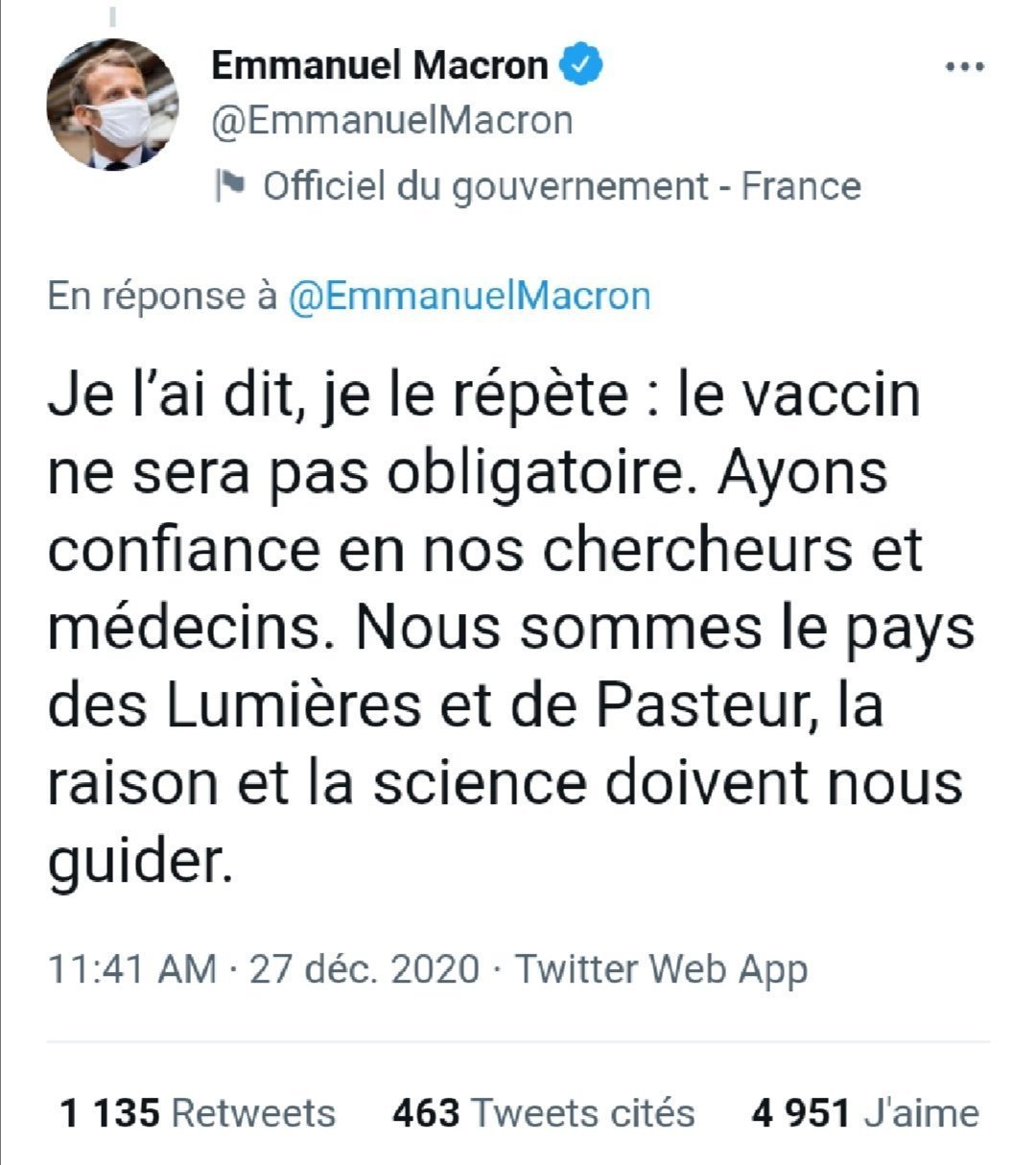 Alors ?Avant la fin de l'année il y a aura 90% de la popu vacciné donc bon l'obligation passera sans souci sur les anti vax minoritaires