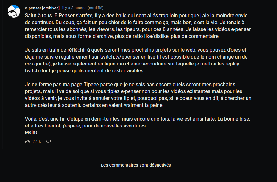 Epenser ferme sa chaine