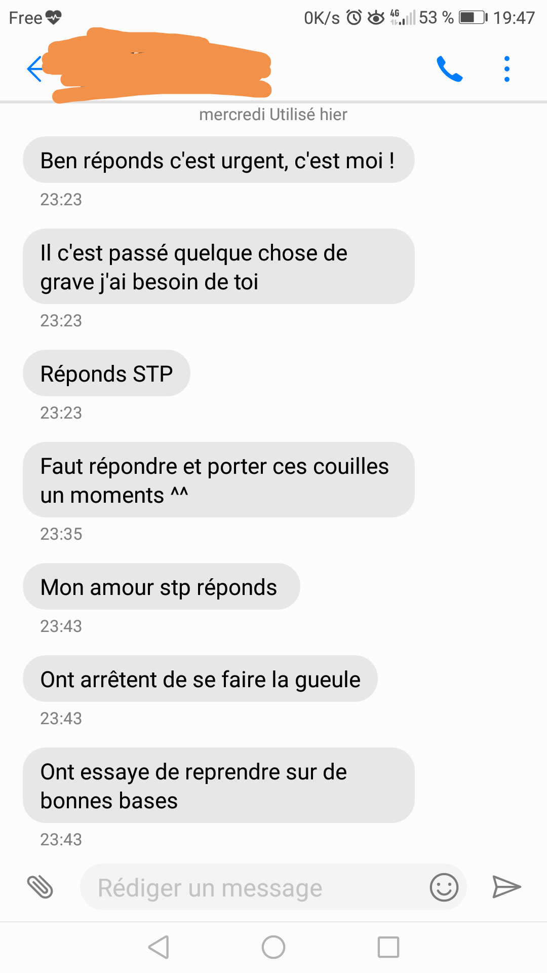 Je crois que j'ai fais une connerie les kheys. Je suis actuellement en couple avec une fille super, même âge, même but, etc.. Cependant hier soir j'étais dans un moment de faiblesse et j'ai recontacter mon ex, voilà les photo :