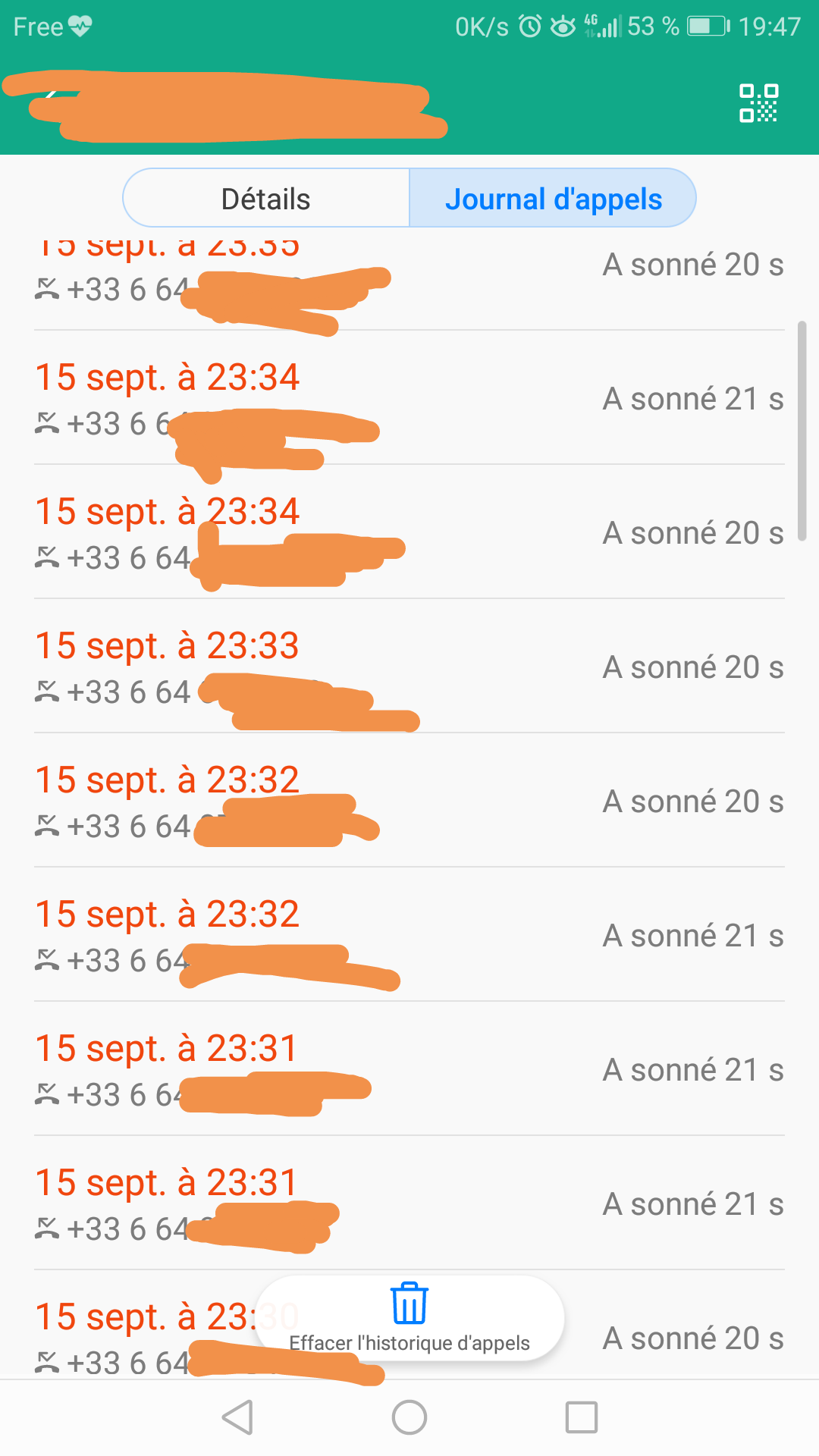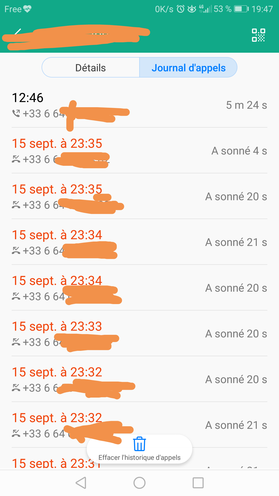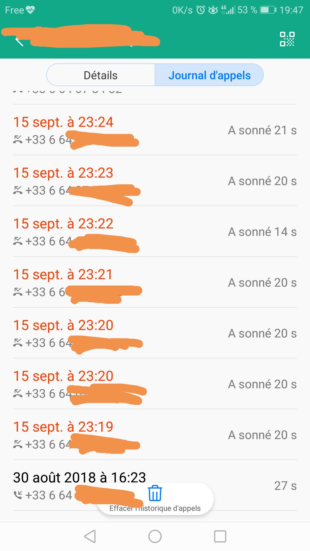 Mon ex utilisait le téléphone de sa soeur et son tel pour me contacter. Par la suite s'en suivit 26 appels non stop d'elle :