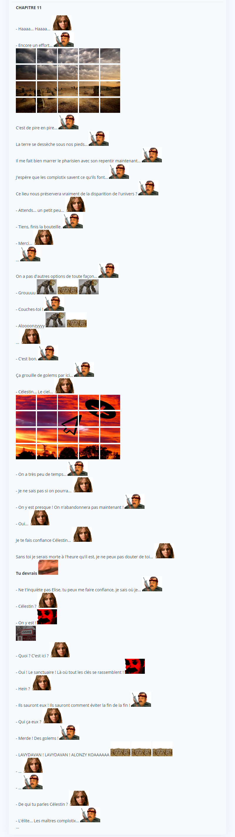 Je voulais faire quelques chose d'assez épisodique avec un schéma un chapitre une rencontre. J'ai un peu développé l'histoire plus tard mais c'était surtout pour rendre la fin plus drôle j'avoue