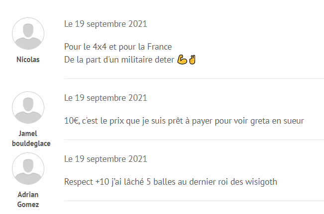 "Ça lache un 20 balle pour que Papacito tape des drift en 4x4 et rager Greta"sapristi c'est exactement comme ca que j'imaginais les pigeons prêt à entretenir leur roi fatima