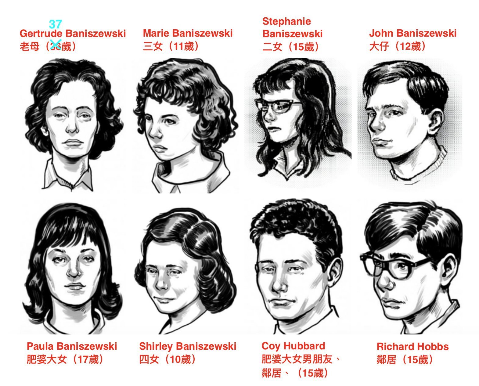 Gertrude Baniszewski, 37 ans, perpétuité, sort en 1985, mort d'un cancer du poumon en 1990