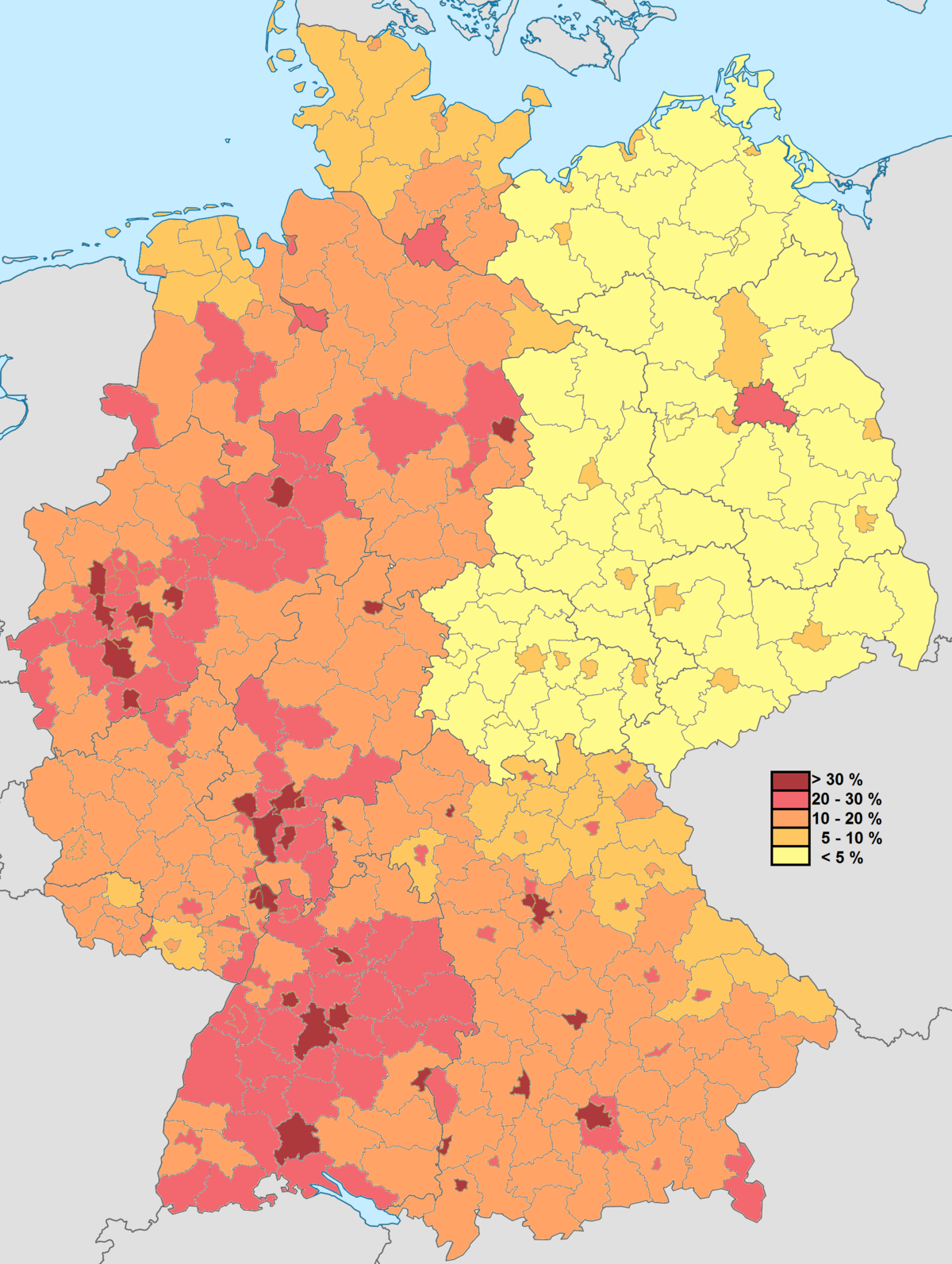 La deuxième correspond à la répartition de la population immigrée en Allemagne