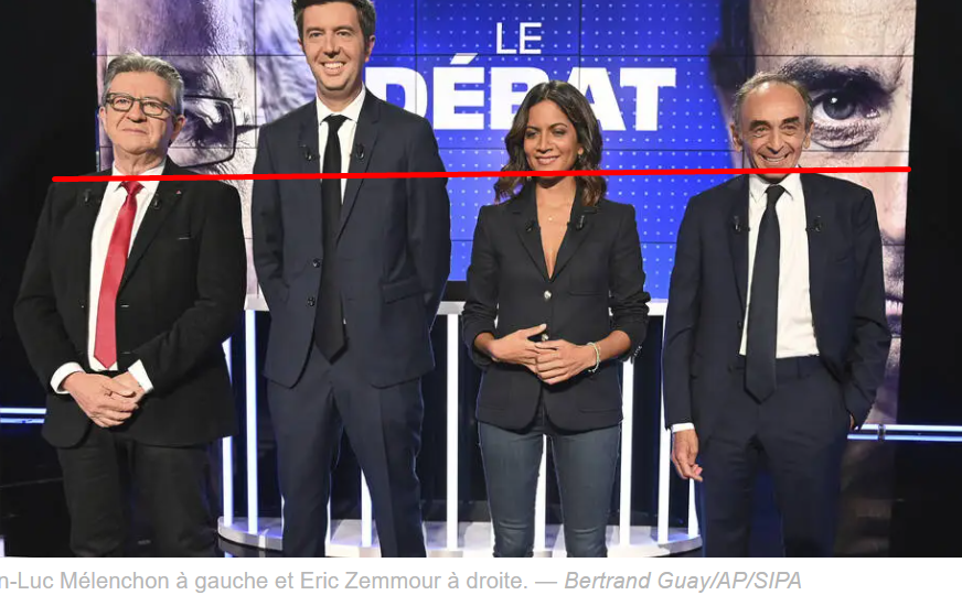 Melanchon posture droite + corps large + tĂȘte largeZemmour posture en voute + corps de brindille + tĂȘte de gobelin