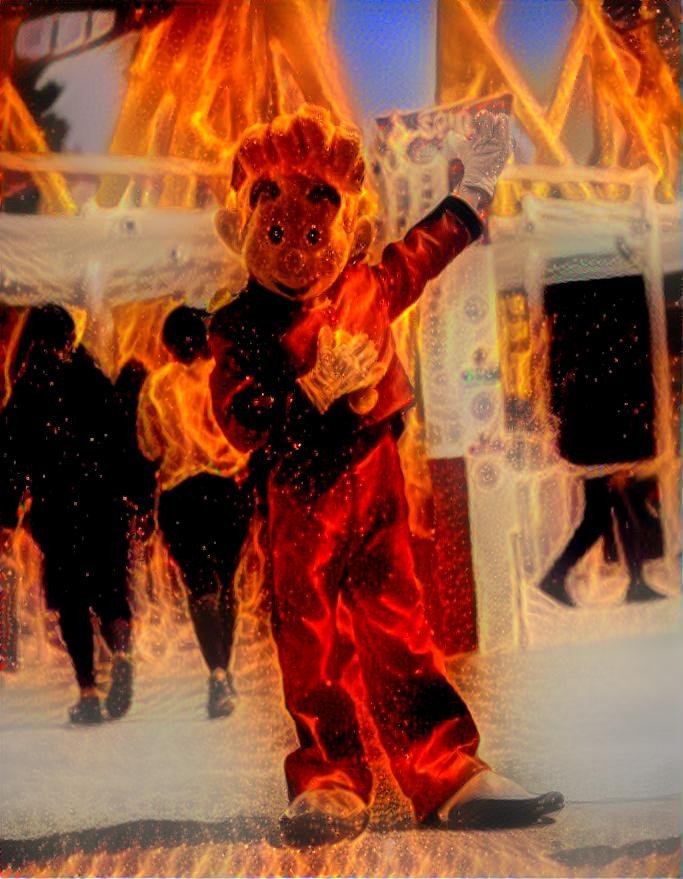 Le 29 septembre 2021 à 13:06:10 :je m'amuse aussi avec deepdreamgenerator où tu peux combiner une image et un style, voilà spirou en style flammes