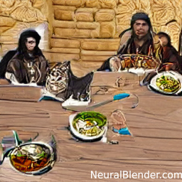 Genghis Khan, Aledander the Great, Cleopatra and Bismark having a lunch together