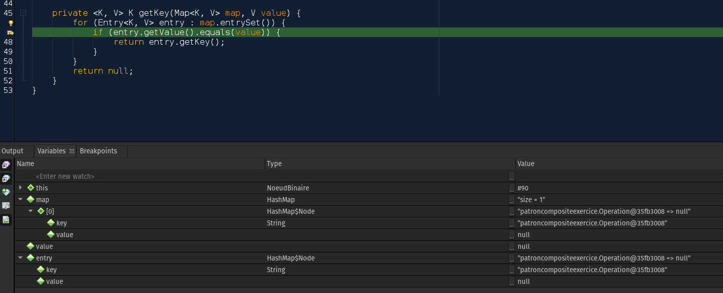 }</code>C'est faux, c'est un singleton pour chaque type d'Operation, c'est à dire que quand tu veux appeler l'opération Soustraction, il faut regarder si cette opération existe bien.
