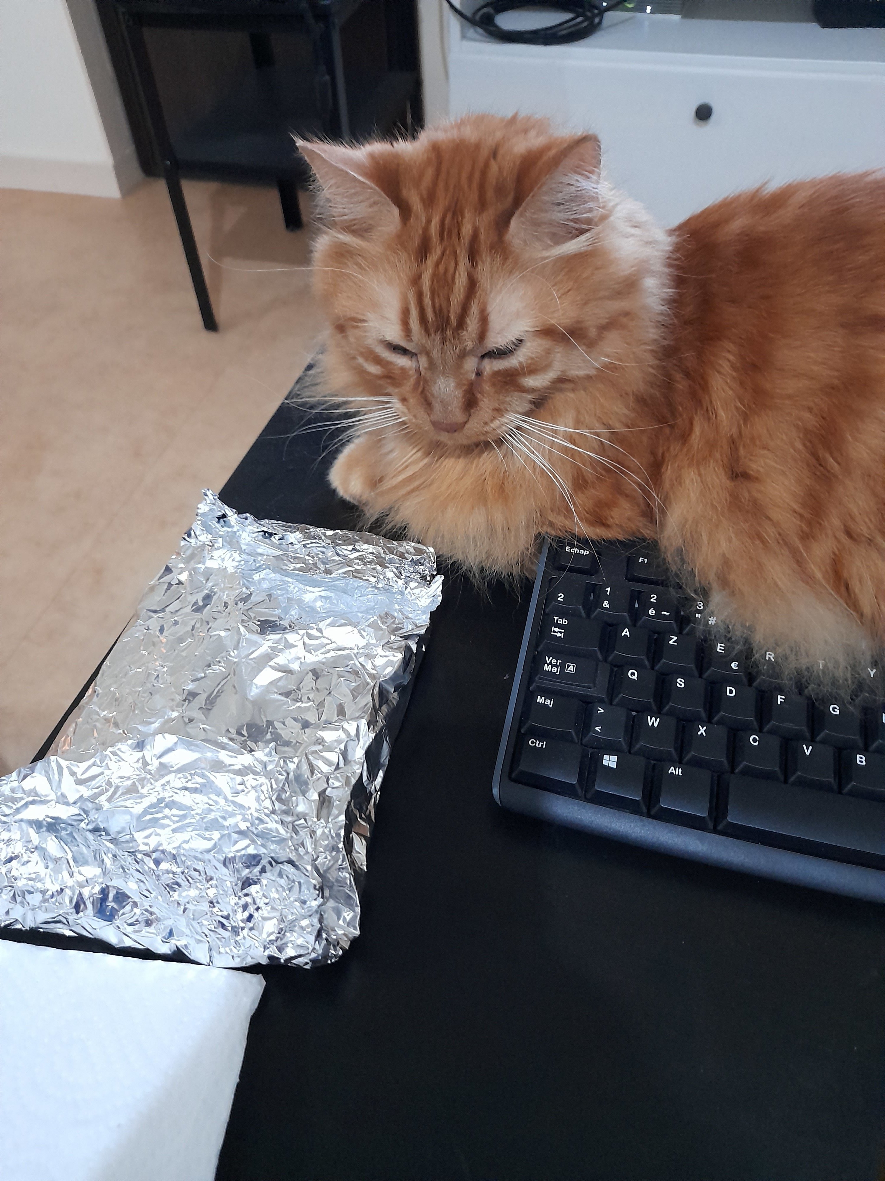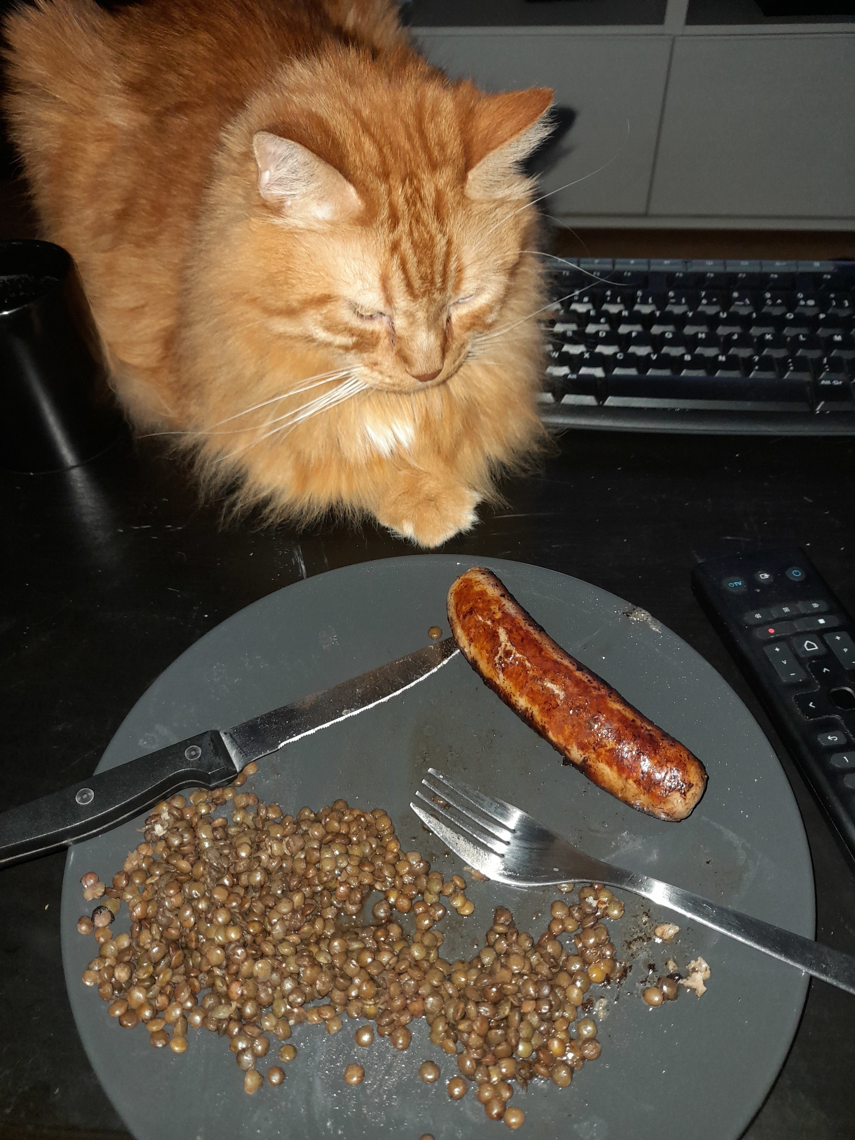 Il est omnivore,il mange même la viande kebab,là il guette mon tacos que j'ai dû réemballer sinon il l'attaque ce fils,mais il est trop mignon,il m'harcèle mais je ne lui en veux pas