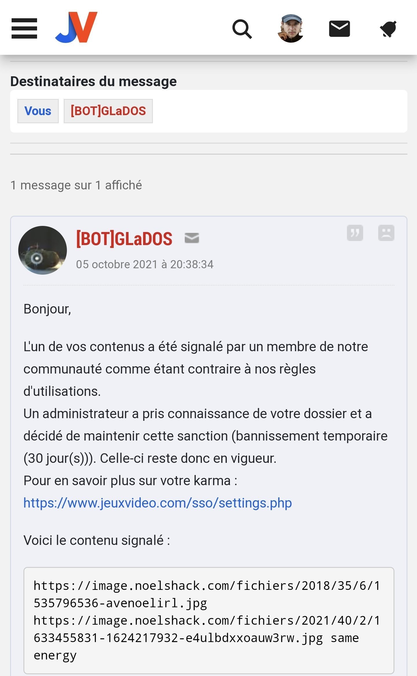 Je suis ban 30 jours pour ça ?