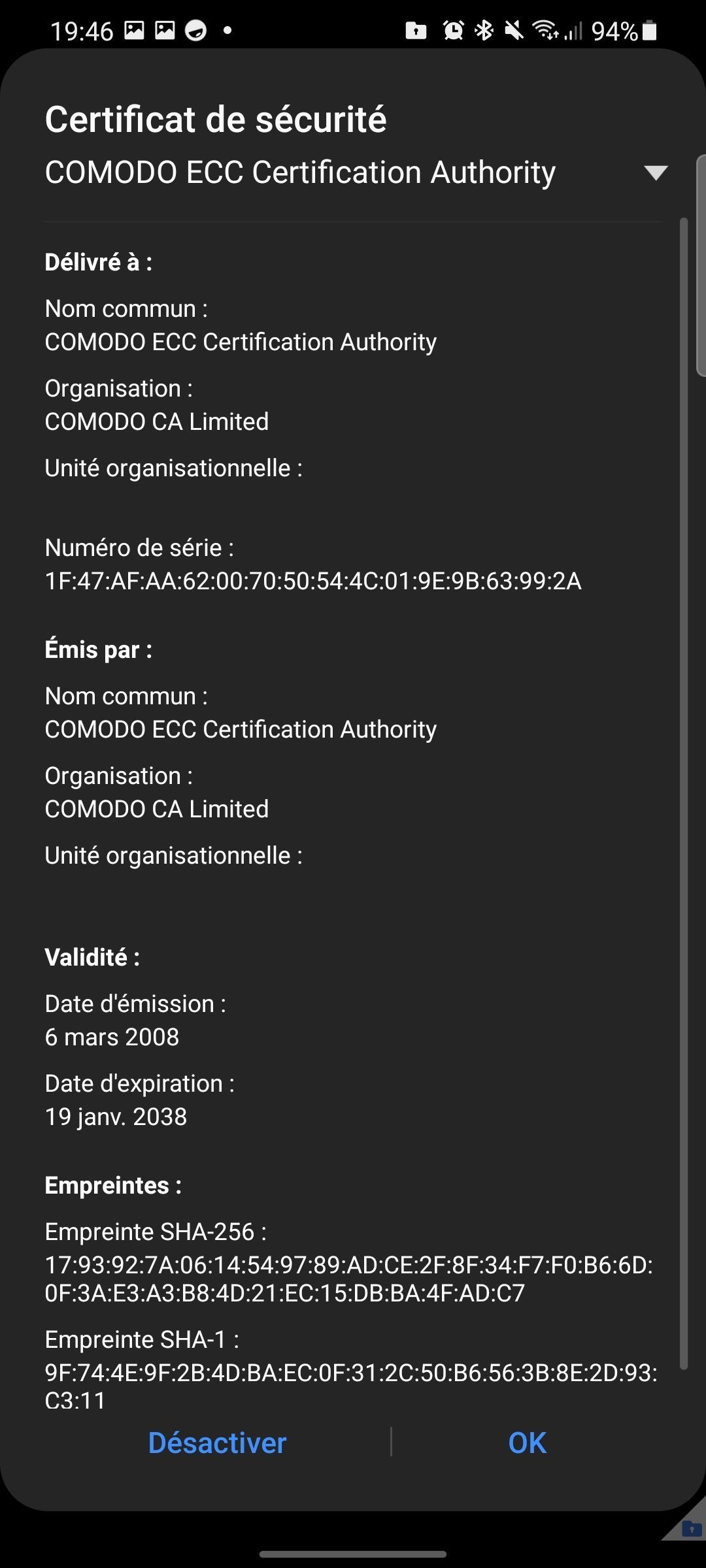 J'ai aussi trouvé plein de certificats de sécurité ect jsp pas à quoi ça sert . Bref j'espère trouver enfin une solution