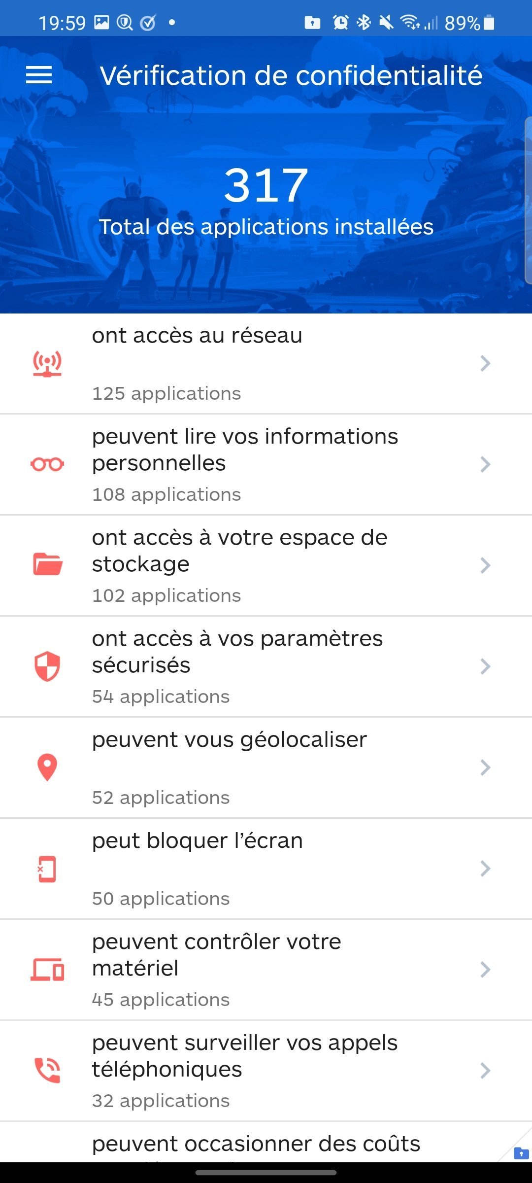 Je rajoute aussi le nombre d'applications qui ont des accès a mon samsung