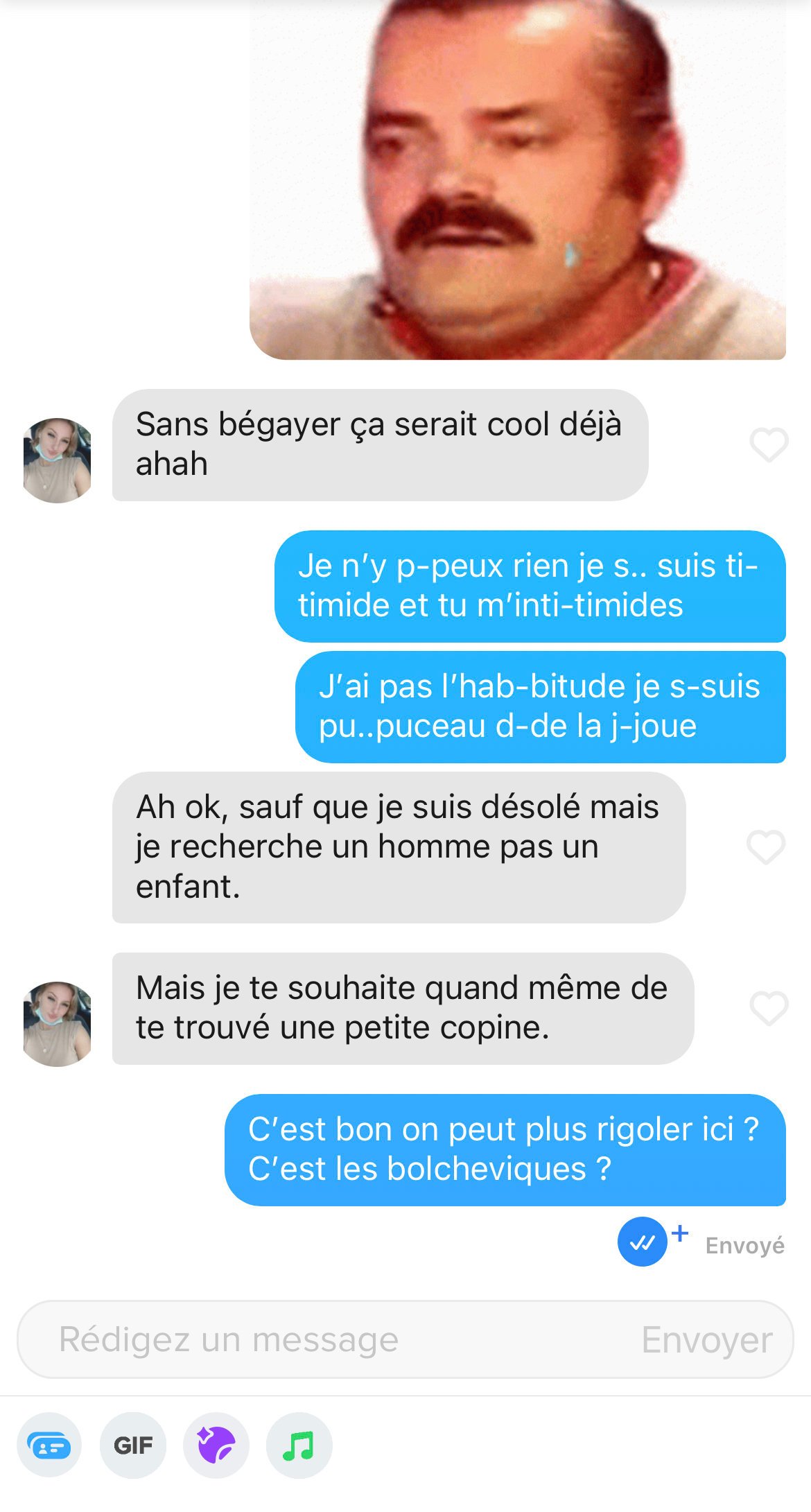 Mais y’a pas mal de meufs qui répondent pas.Non mais je comprend pas l’intérêt de match si tu répond pas