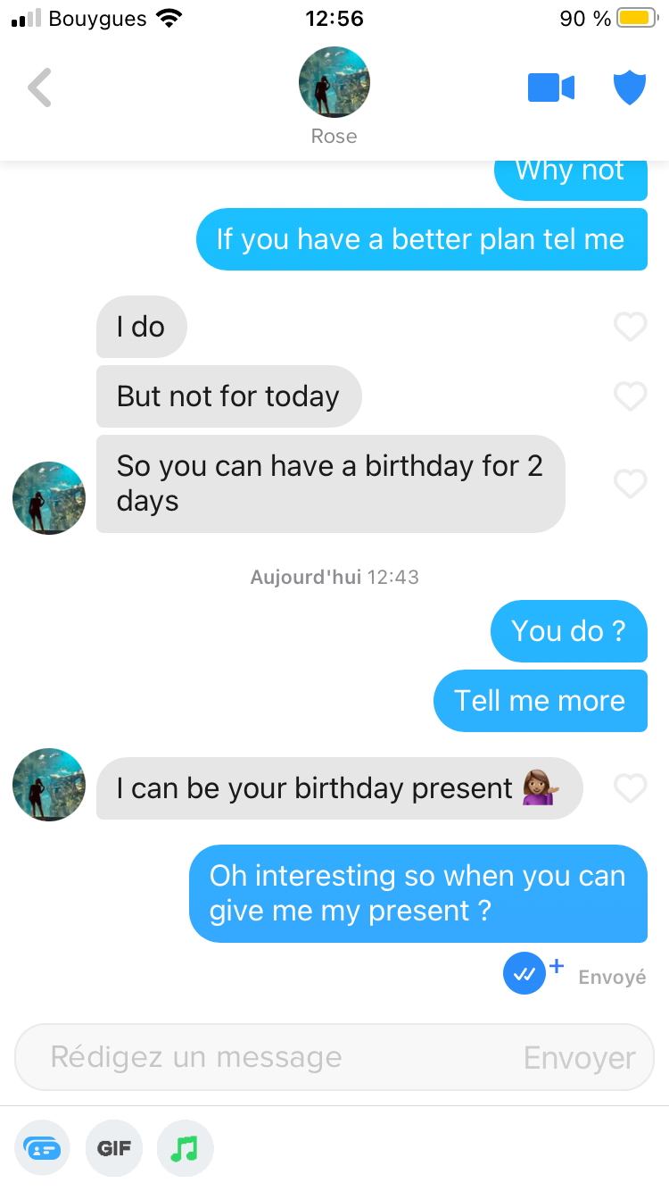 Moi j'ai une petite gourgandine de Tinder qui m'a recontacté après 2 semaines de ghost, elle a faim