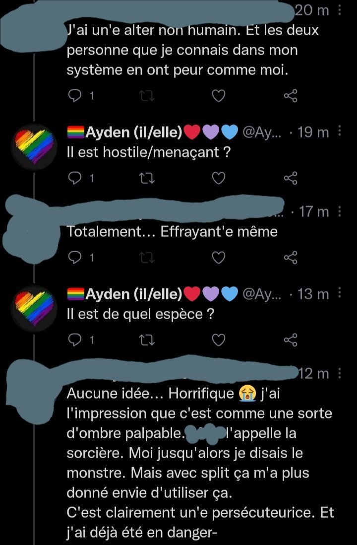 Les personnes atteinte de TDI se rendent même pas compte qu'elles changent de personalités et surtout qu'elles en ont d'autre donc on feed pas ces AW merci![]()