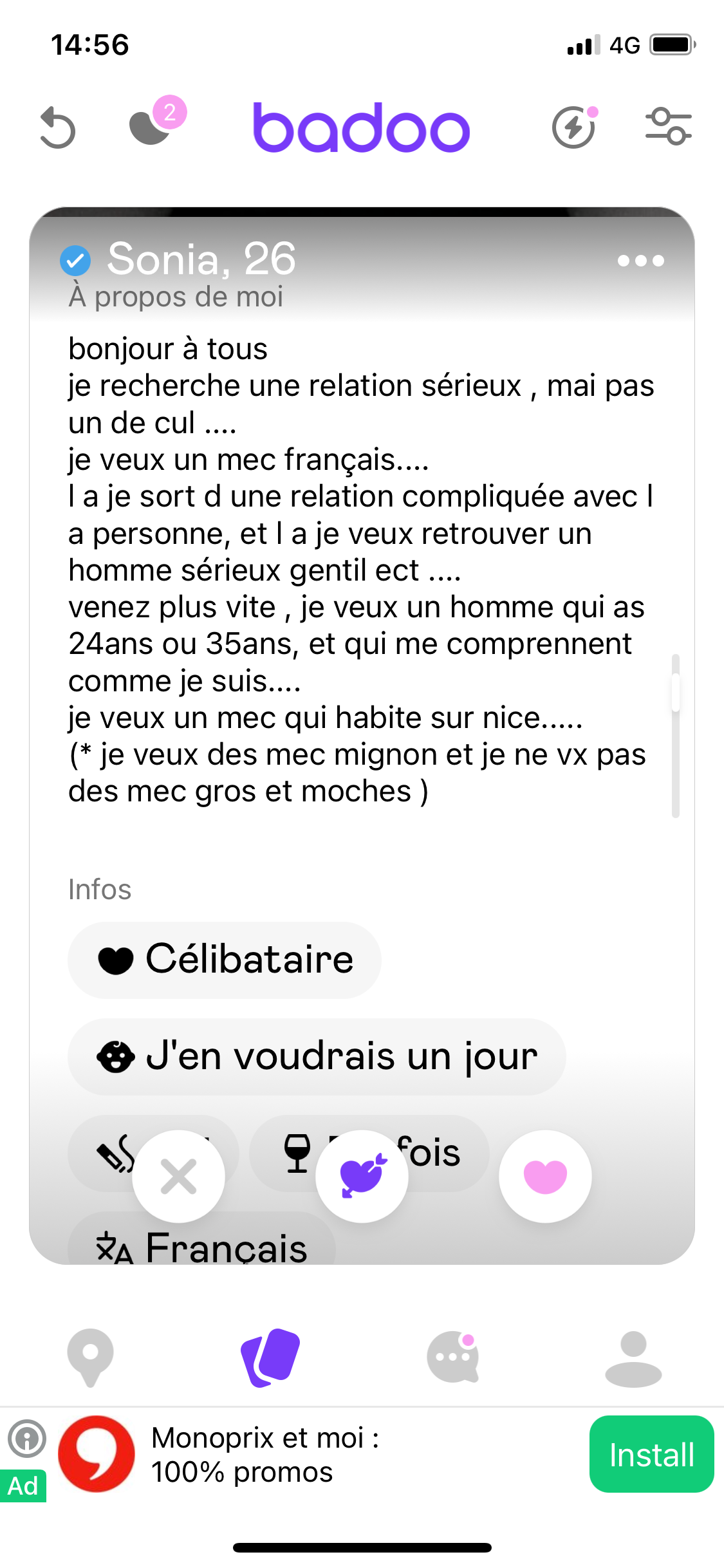 Edit : J'ai pas mis les options "Maman de X bout de chou / pas de plan cul / féministe" et tout l'attirail