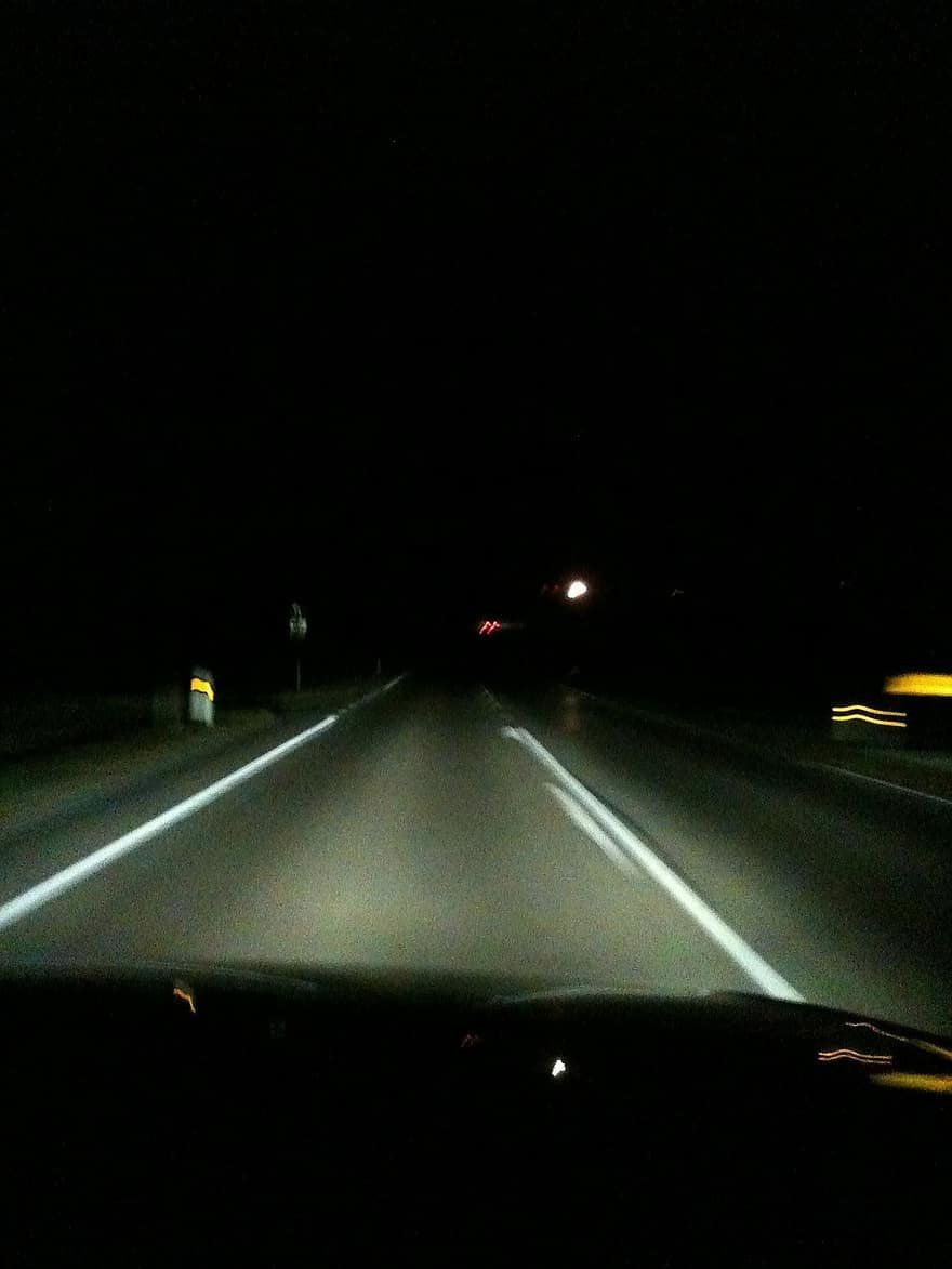 Il y a très peu de voitures la nuit , c'est aussi pour cela que j'aime rouler à cette heure en dépit du fait que je ne vois rien a cause de l'obscurité.