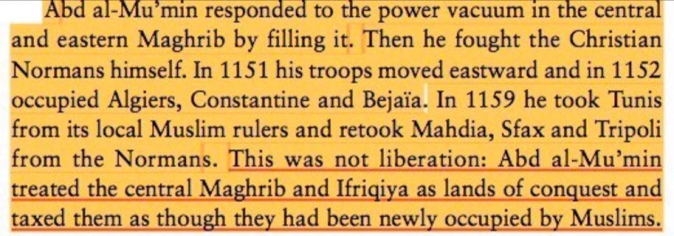 Abdelmumin voyait la Tunisie, la Libye et le Maghreb Centrale comme une terre conquise et donc étrangère.