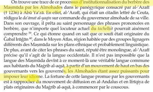 Le Masmouda qui était plus influant que l'Arabe chez les Almohades.