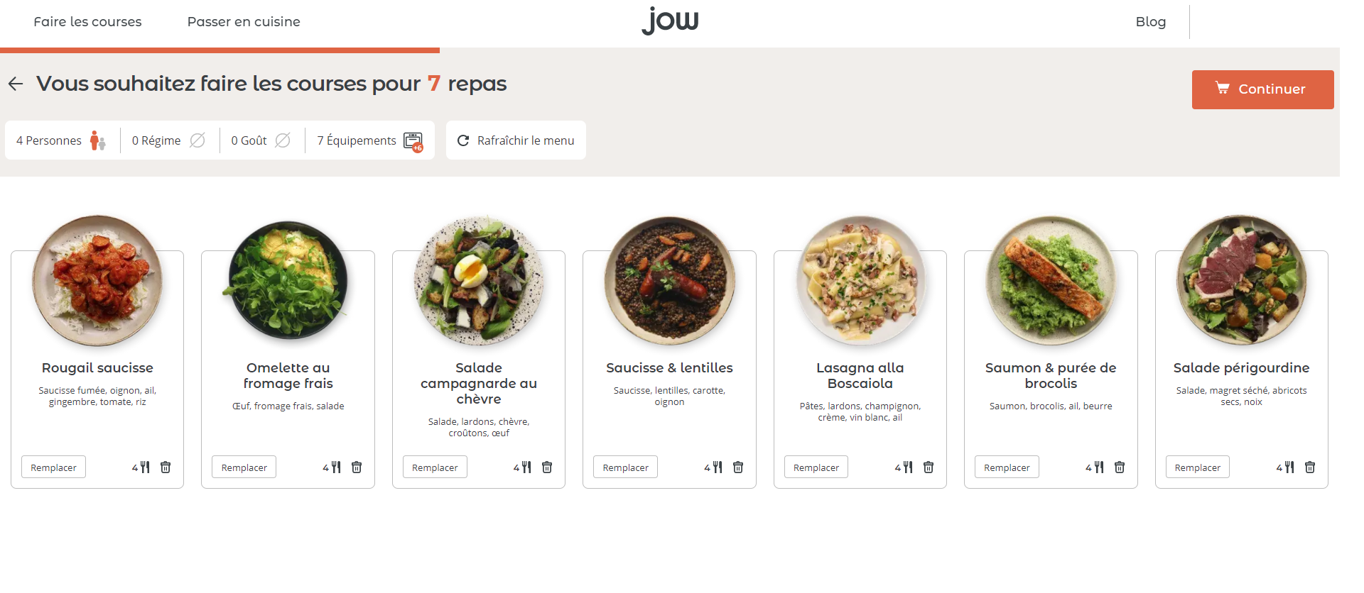 il vous demande combien de repas vous voulez, puis a partir de la, il sort un menu, modifiable a votre bon vouloir.