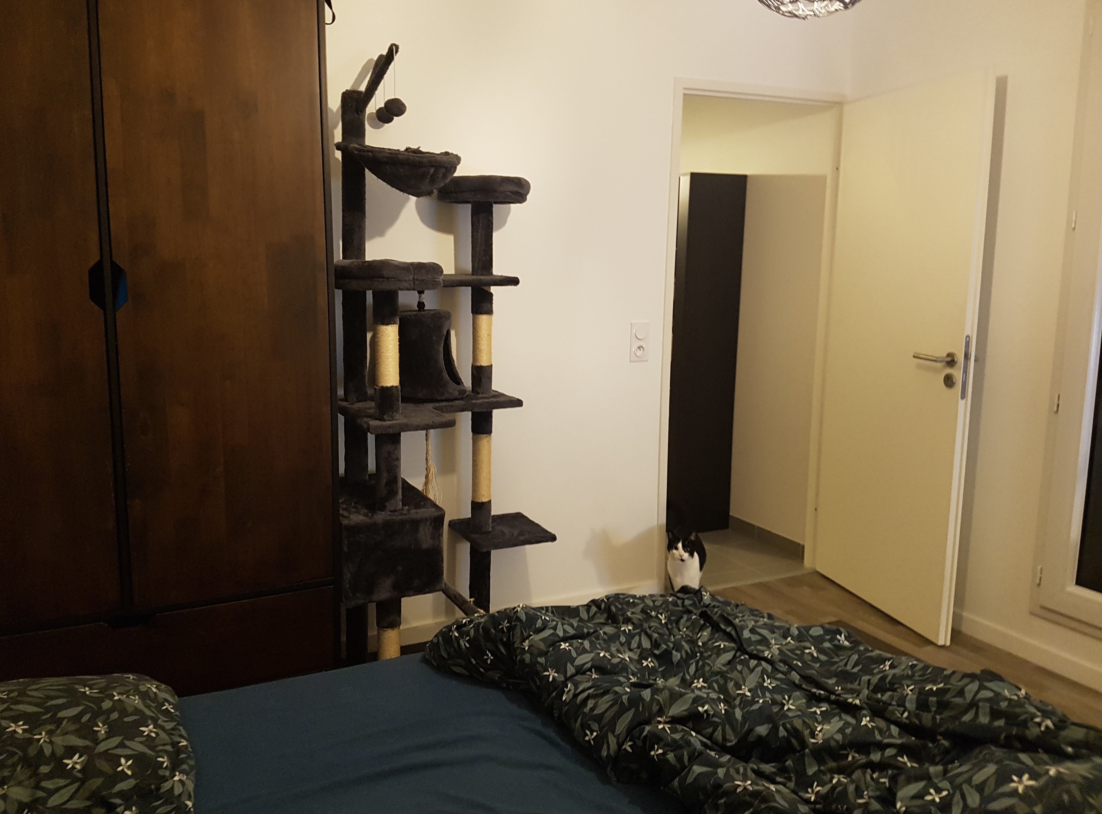 Y a juste un lit encore et un peu de rangement, peu de place alors c'est la merde pour prendre tout en une seule photo![]()