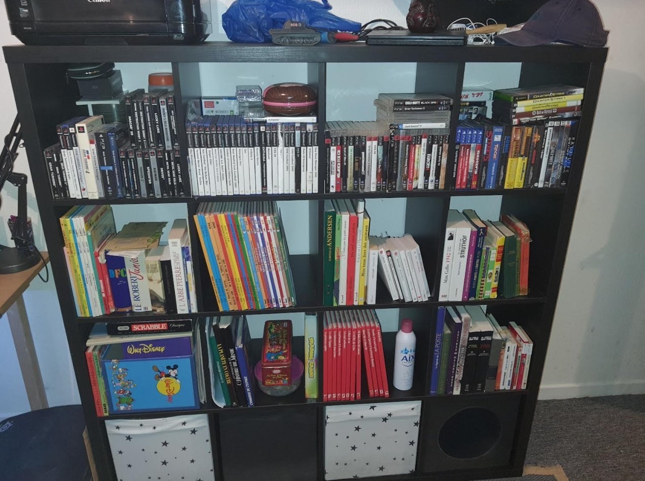 La bibliothèque me fait sourire parceque ça retrace toute ta vie on voit que t'as les mêmes trucs dedans depuis l'enfance avec les jeux psone puis ps2 les titeufs etc