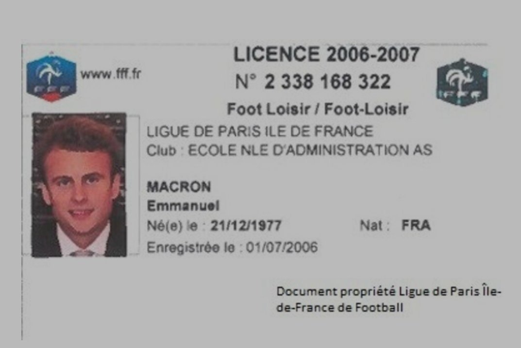 Le 27 octobre 2021 à 10:40:10 : Que pense l'elite de la fausse license de MacronPhoto de septembre 2007 avec attali logo fff de 2007Carte enregistré en juillet 2006 🙂Macron qui joue avec le temps et vous ?