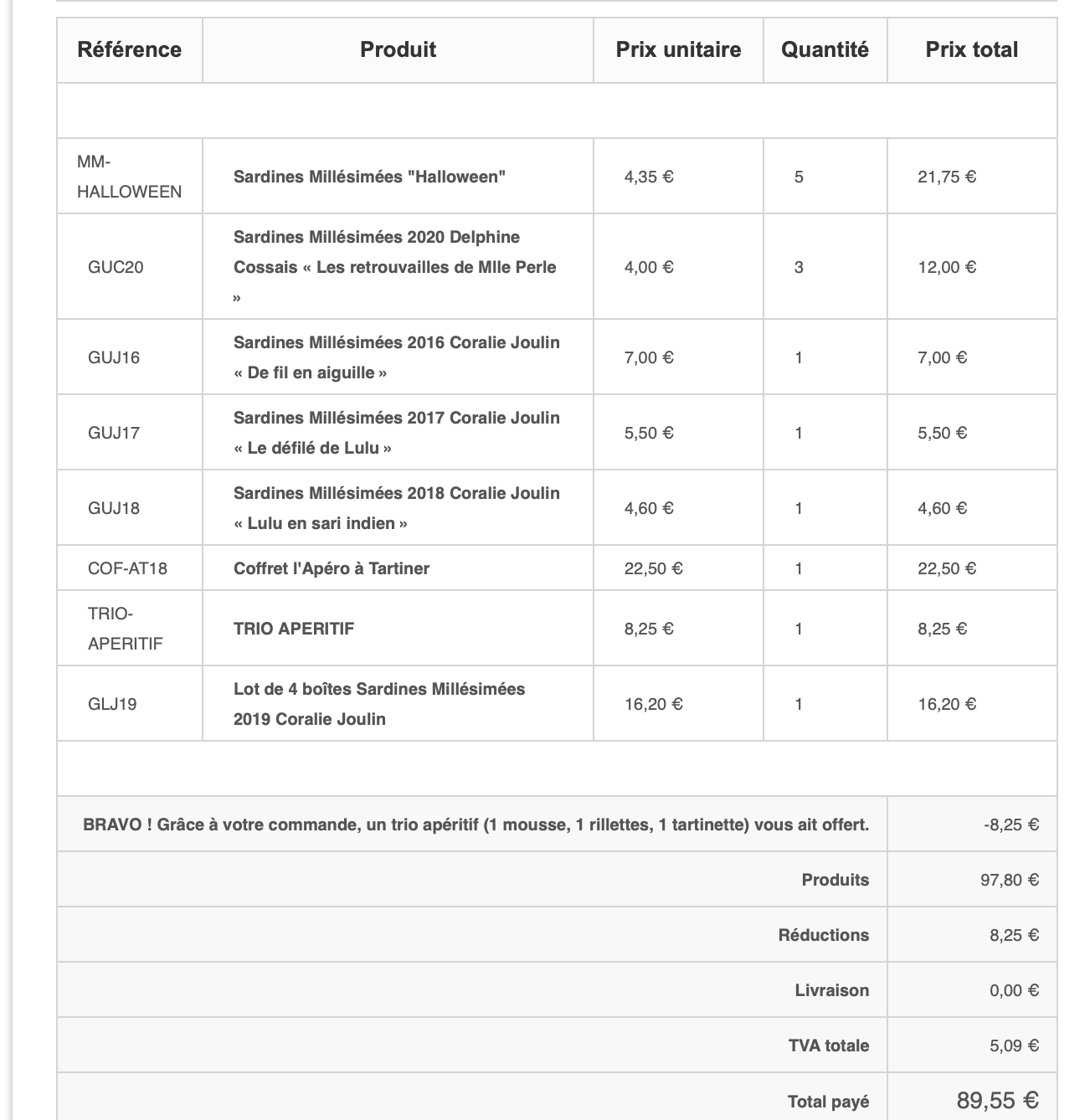 Perso je rentre dans le Sardine Game. J'ai un stock de 4 boîtes: on commence doucement. Je chipperai par-ci par-là quand je trouverai de bonnes marques