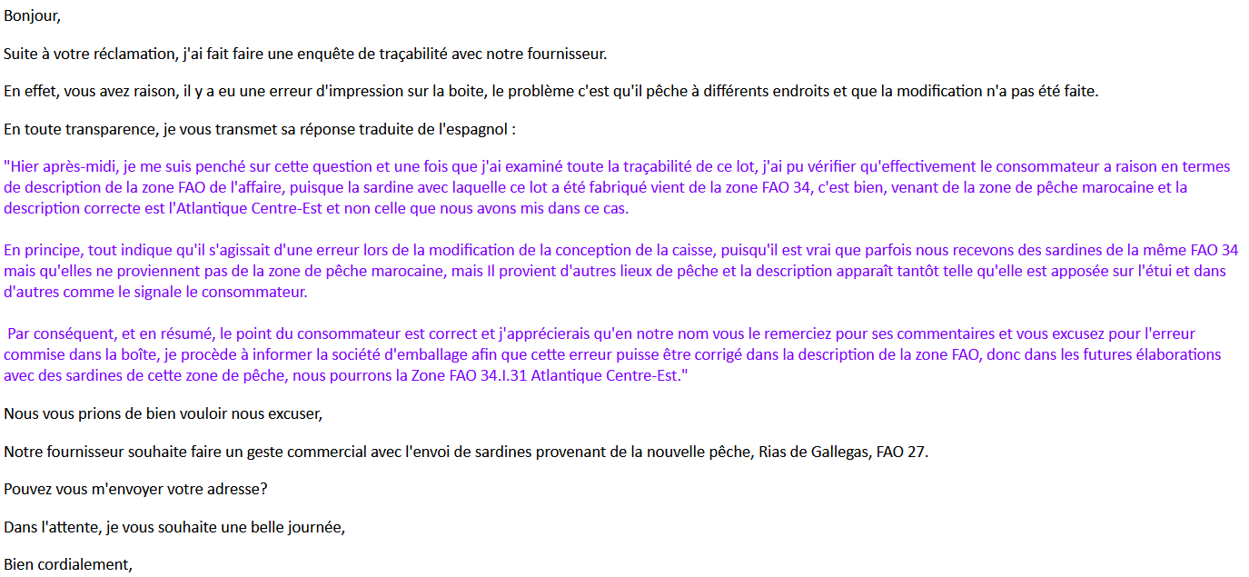 Alors voici le suivi de l'histoire, et le dernier mail reçu c'était donc bien des sardines FAO 34 :