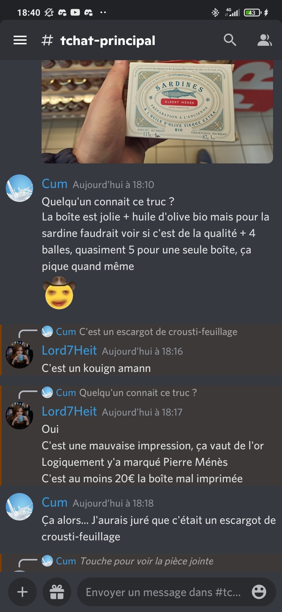 Les kheys, il faut ABSOLUMENT que je vous fasse part d'une mésaventure qui m'est arrivée cet après midi lorsque je suis parti à la pêche à Auchan.Je me baladais tranquillement au milieu des boîtes Saupiquet et Connétable, un sourire d'enfant illuminait mon visage, la vue de ces innombrables conserves qui s'offraient à moi me rendait de bonne humeur, tout allait pour le mieux. Et là, j'apperçois cette merveille :