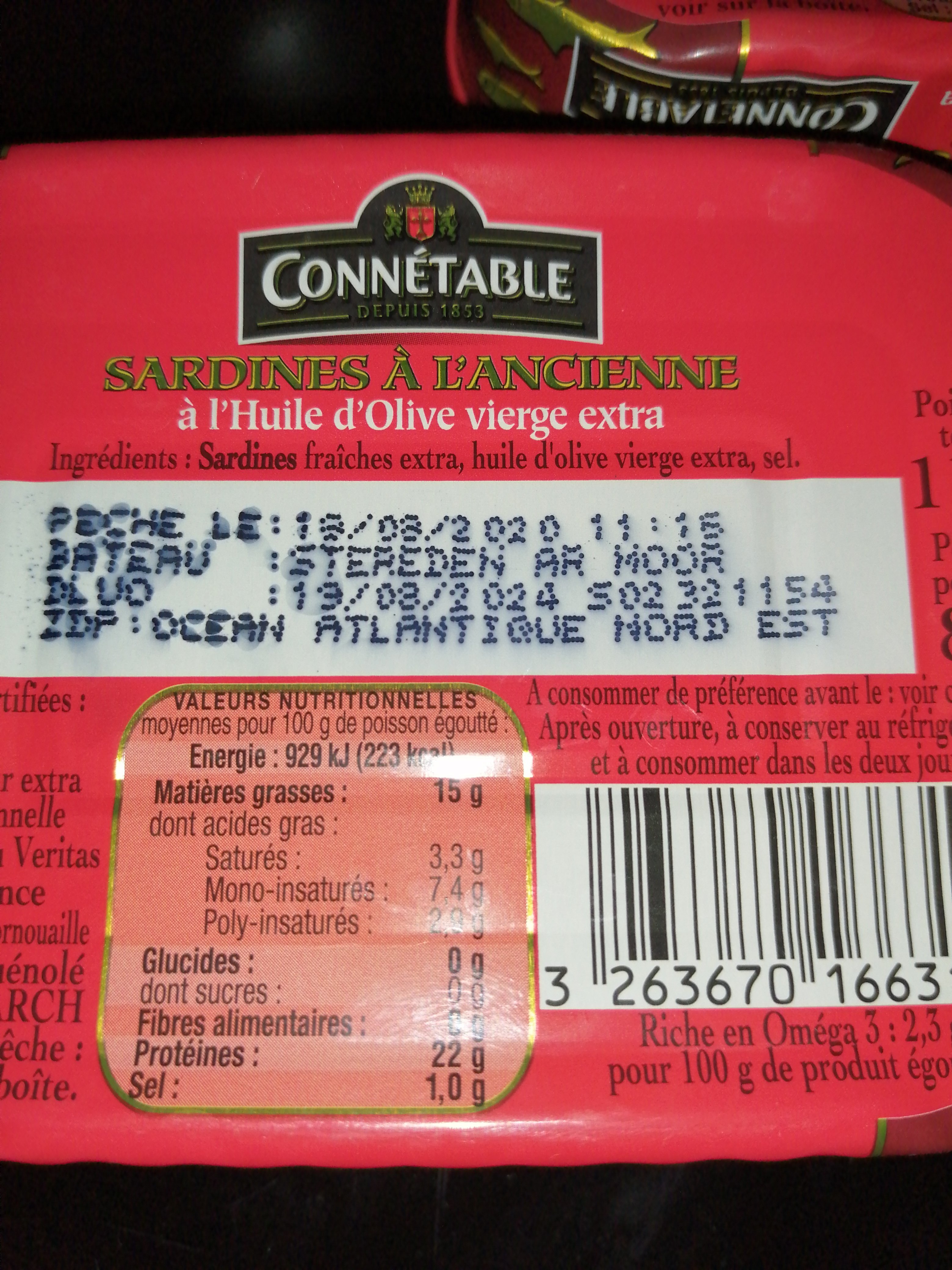 Petits label rouge d'Atlantique N-E avec un millésime 8/2020, déjà 1 an d'âge (pour toutes les boîtes : la date de pêche diffère de 5 jours pour une d'entre elles).Bref je vais vite fait mettre ça au coffre