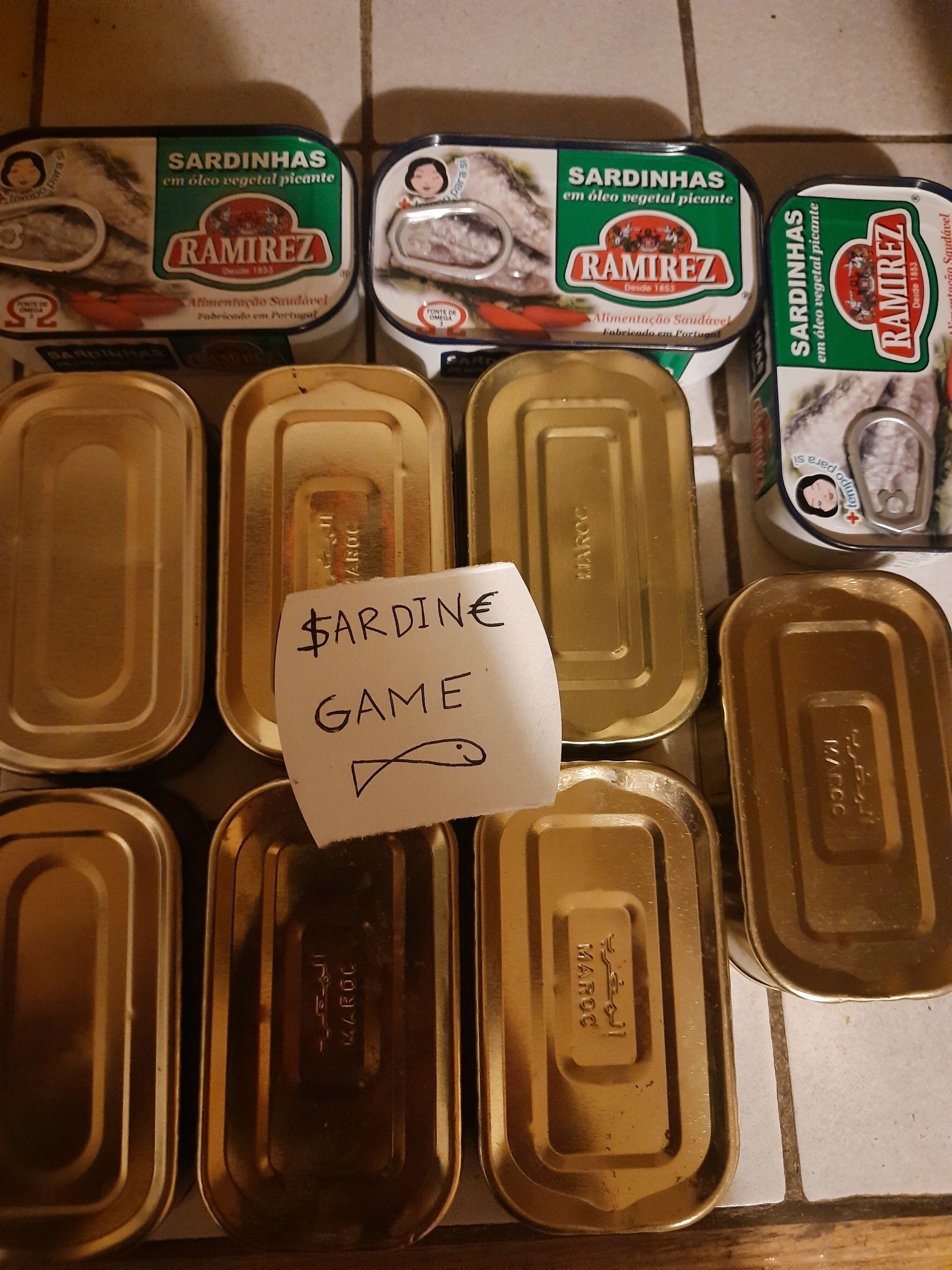 ,je me suis mis dans le sardine game depuis pas longtemps .hélas mes finances ne me permettent pas de faire des achats de 50 boîtes de belle-iloise pour 500 € . je pense investir , mais j'attends une bonne affaire, un bon business, une palette de boîte de sardines à l'huile d'olive, oublié depuis 10 ans dans l'entrepôt d'un magasin abandonnéJai acheté ces 7 boites dans un magasin de déstockage pour 3.50 elles sont de 2020 , c'est de la méditerranéenne donc de la sardine qui bouffe de la pollution et de la merde mais bon je vais essayer de les confire, je vous en dirai des nouvelles d'ici quelques années .