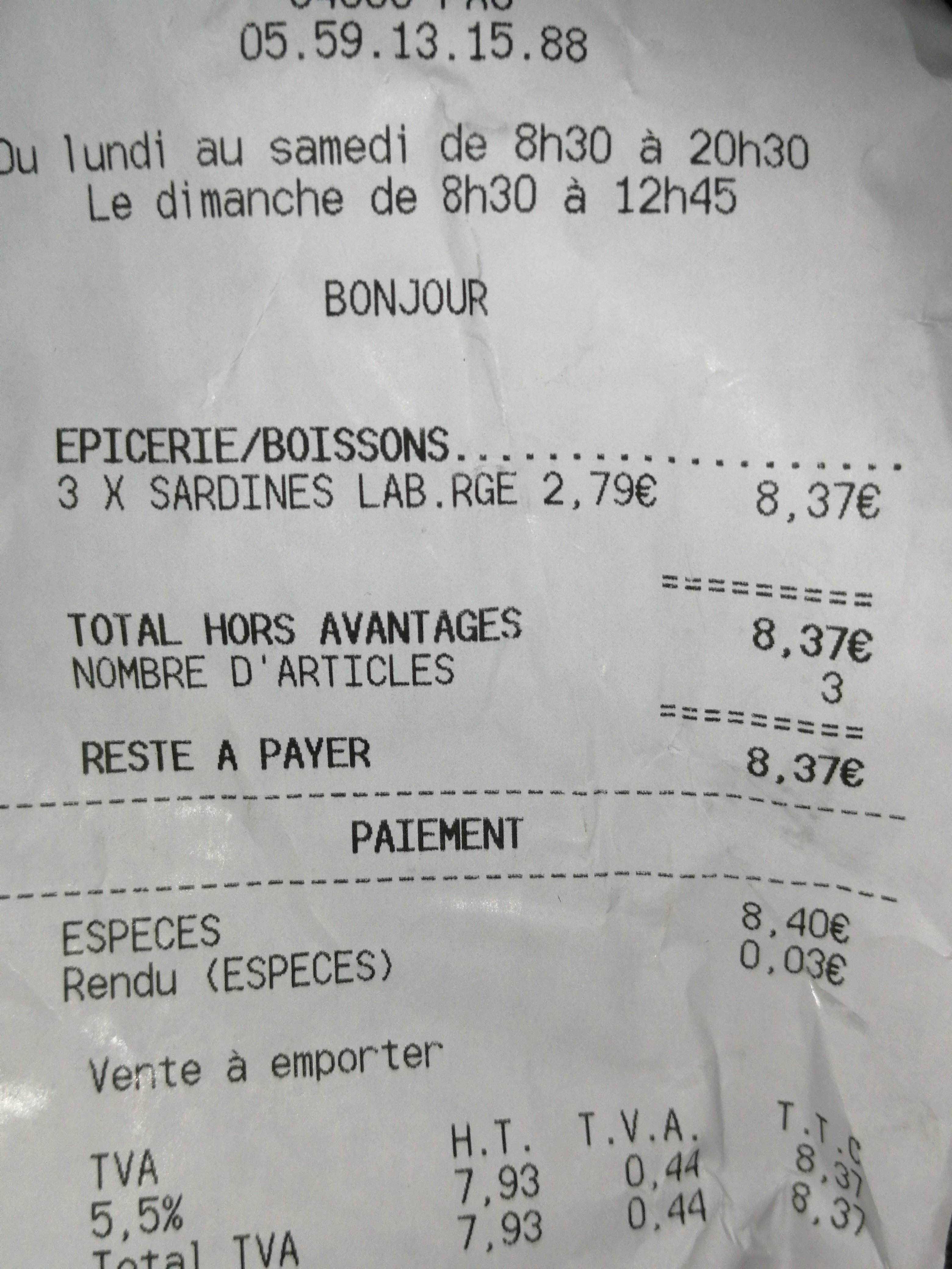 Alors... 9 boîtes de sardines classiques et 5 label rouge (j'en ai mangé une) soit au total 14 boîtes