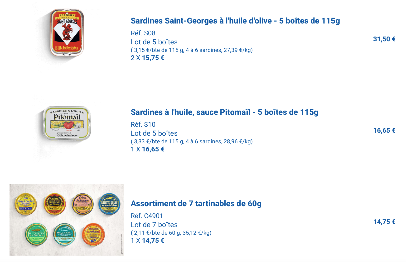 J'ai pas vu de retours sur les boites de sardines de "spécialité" ? Quelles sont vos spécialités préférées chez La belle Iloise ? Et à contrario celles qui vous ont le plus déçues ?