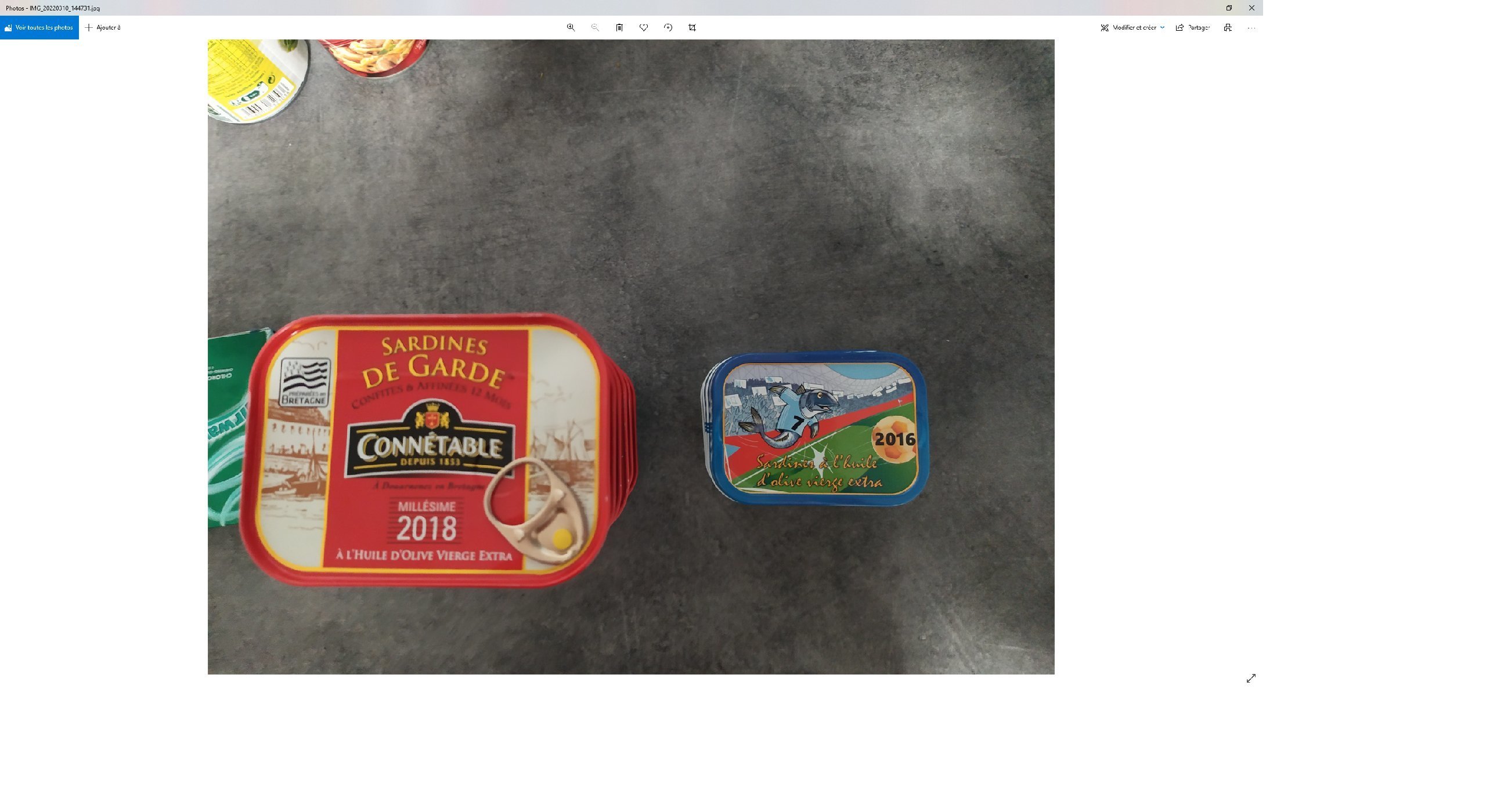 Je deviens zinzin à cause de ce topic, mais il est vrai qu'une fois que l'on a gouté à des millésimé ...je reviens du auchan avec 10 connétable millésimé 2018 et 3 de cette boite 2016, il n'est pas mention de millésime ni de sardines de garde, mais la boite est sympa, je gouterai, a voir, si elles sont bonne j'en reprendrai