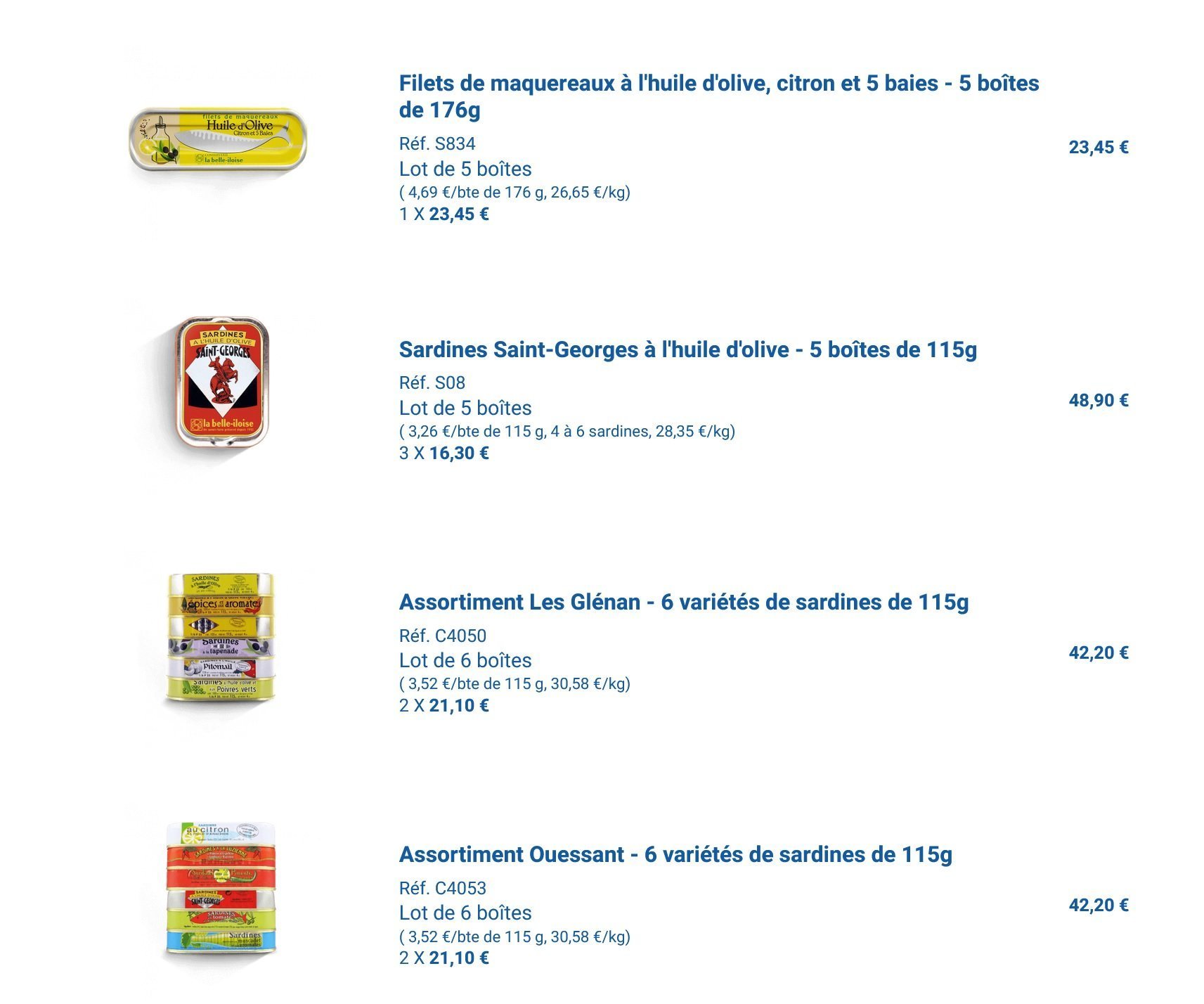 Bon, après dégustation, les sardines Connetable échalotes ne me plaisent pas du tout : poissons secs, durs, sauce pas dingue qui nuit au goût de l'huile et du poisson. Vraiment pas mon truc.![]()